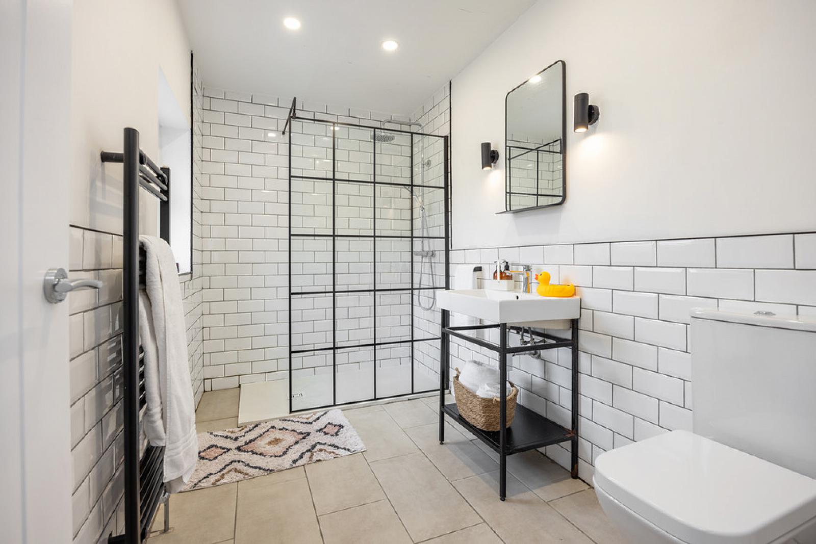 SHOWER ROOM 10' 9" x 5' 10" (3.277m x 1.799m) Luxury shower room with fully tiled walk in shower with thermostatic shower unit. Low flush wc. Wall mounted wash hand basin with mixer tap. Heated towel radiator. Extractor fan. Tiled floor. Part tiled walls.