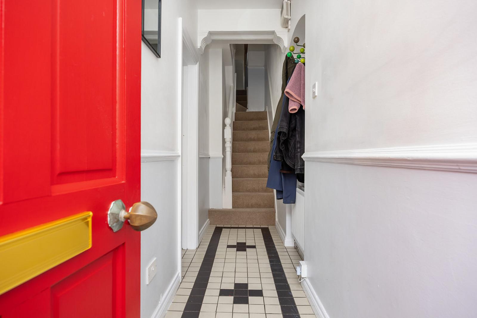 ENTRANCE HALL Decorative tiled floor with original features such as dado rail and corbels.