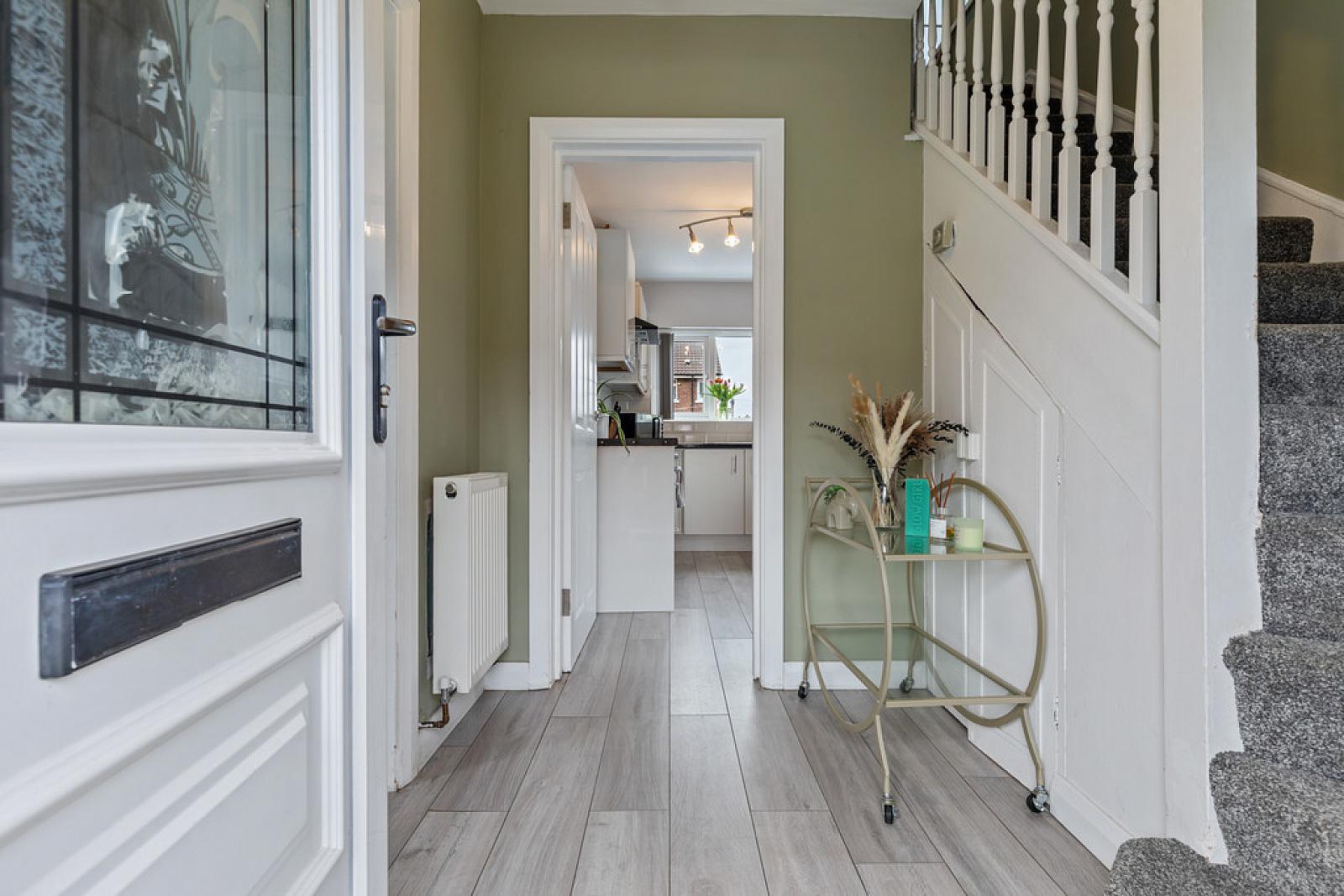 ENTRANCE HALL uPVC front door, under stair storage, wood strip flooring.