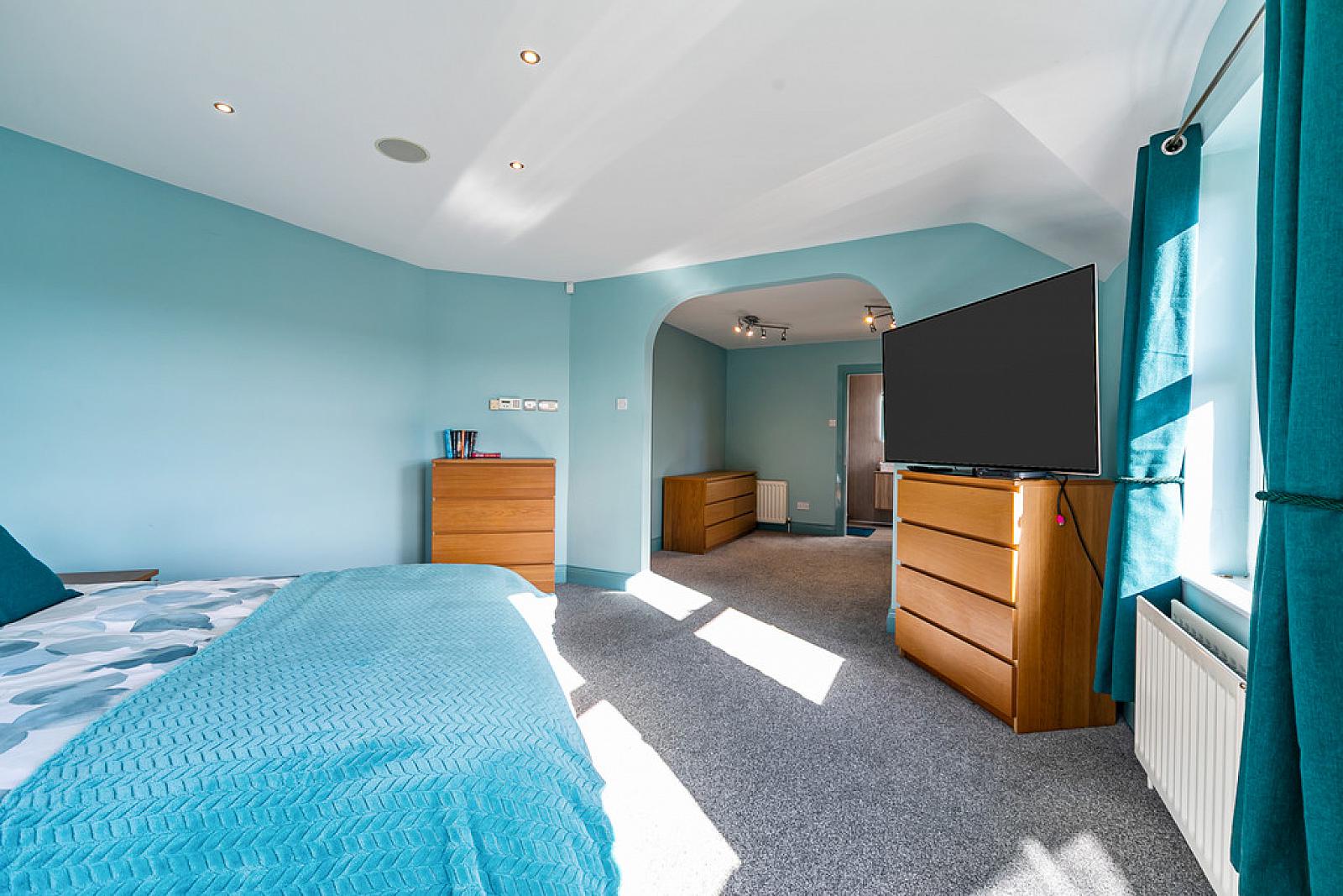 DRESSING ROOM 8' 8" x 10' 10" (2.64m x 3.3m) Fitted wardrobes with sliding doors, double panel radiator, leading to...