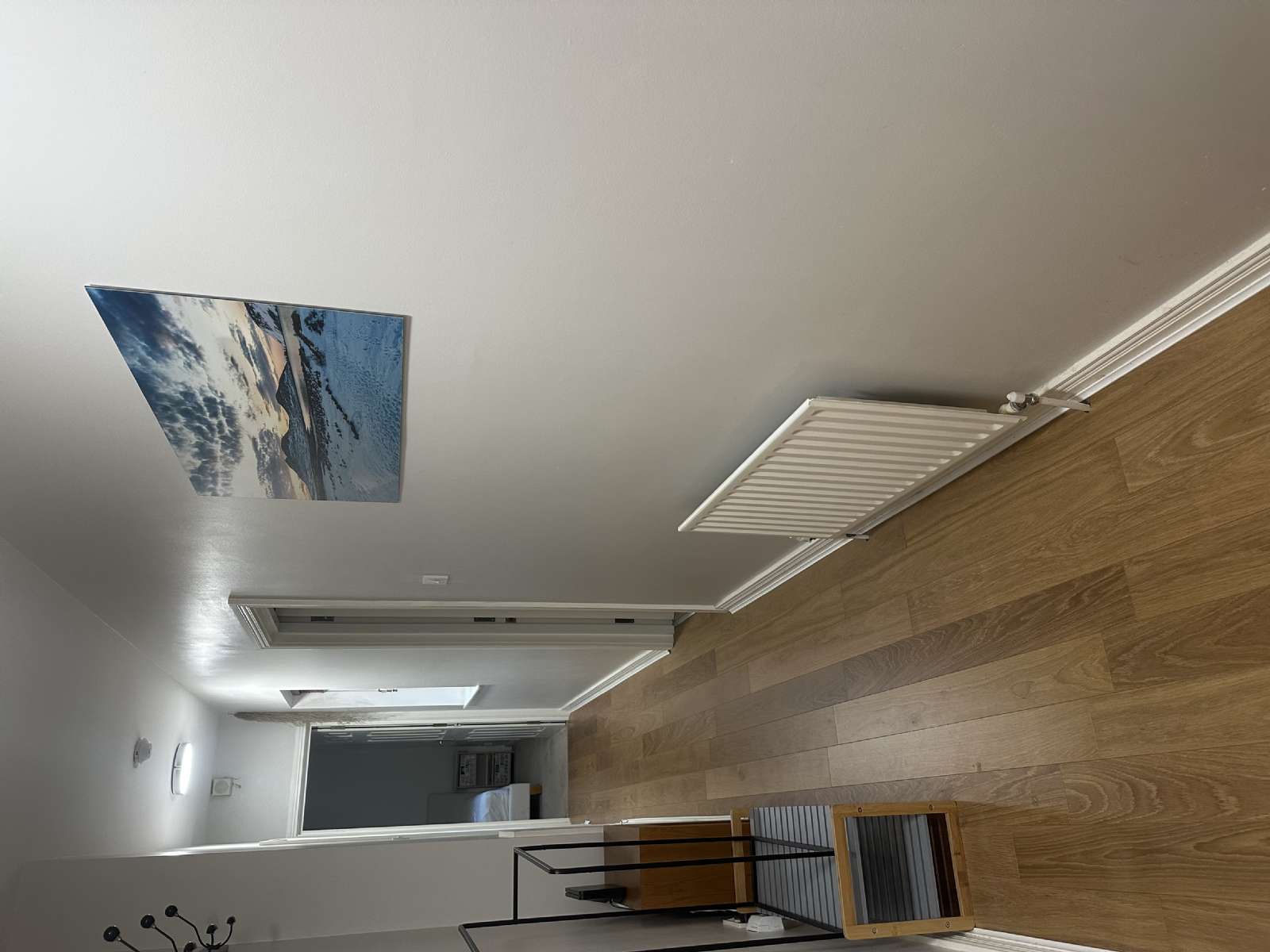 - Hallway, laid in wooden flooring, leading to;