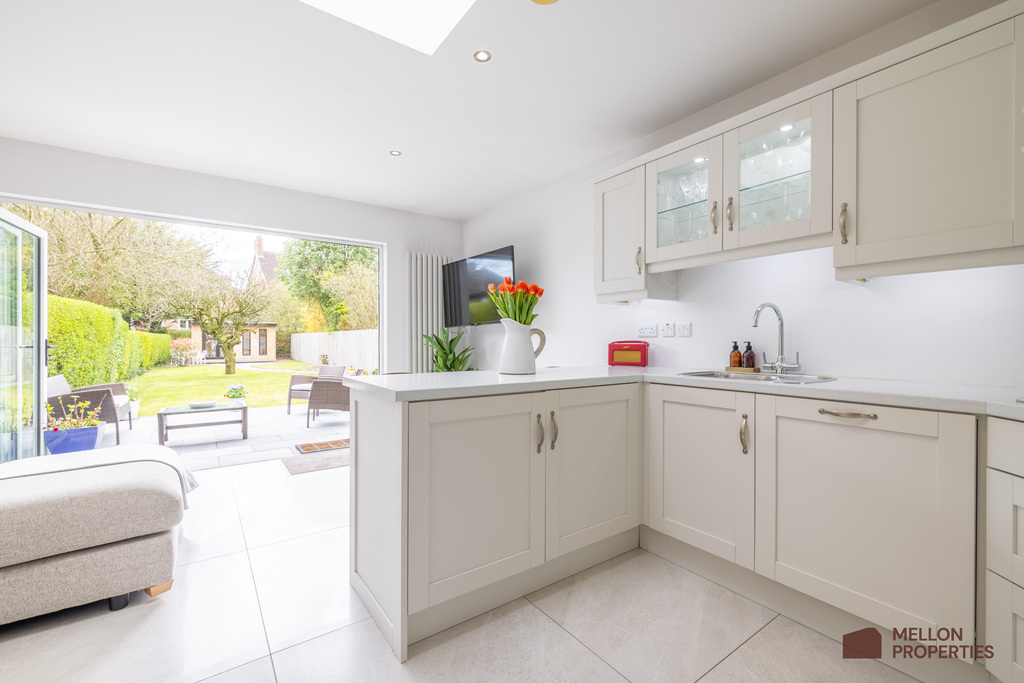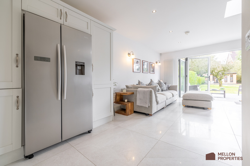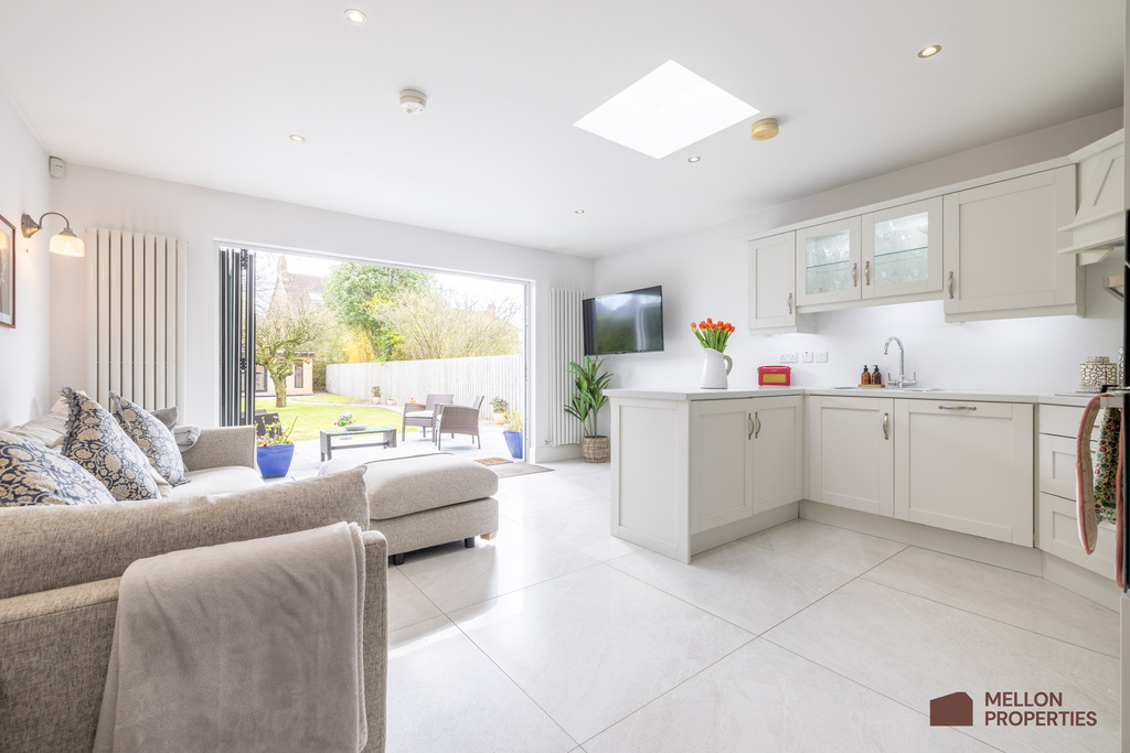 At the heart of it all is the kitchen and living space, a bright, open-plan extension that completely transforms how the home feels and functions. The three-metre bi-folding doors and skylight flood the space with natural light, opening straight out onto the patio and garden, providing seamless indoor/outdoor living. It's the kind of room you'll naturally gather in, morning coffees, slow Sundays, dinner with friends, kids playing outside while you cook. Effortless, social, and connected.