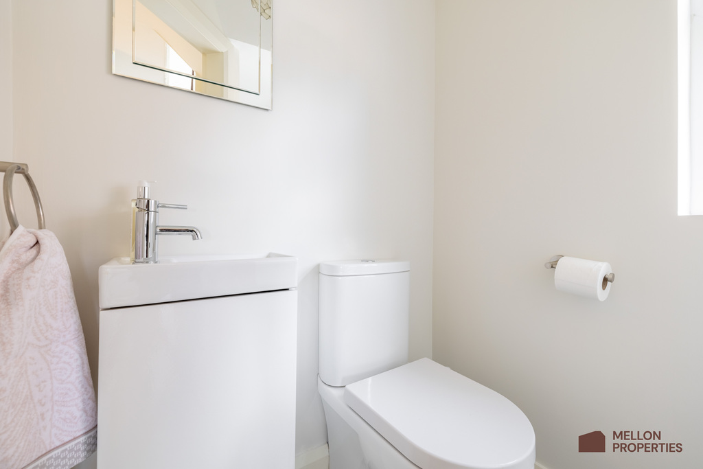 Upstairs, there are three bedrooms, two doubles and a flexible third room that works just as well as a nursery, home office, or dressing room. A modern family bathroom completes the first floor, while a handy ground floor WC keeps everyday living practical.
