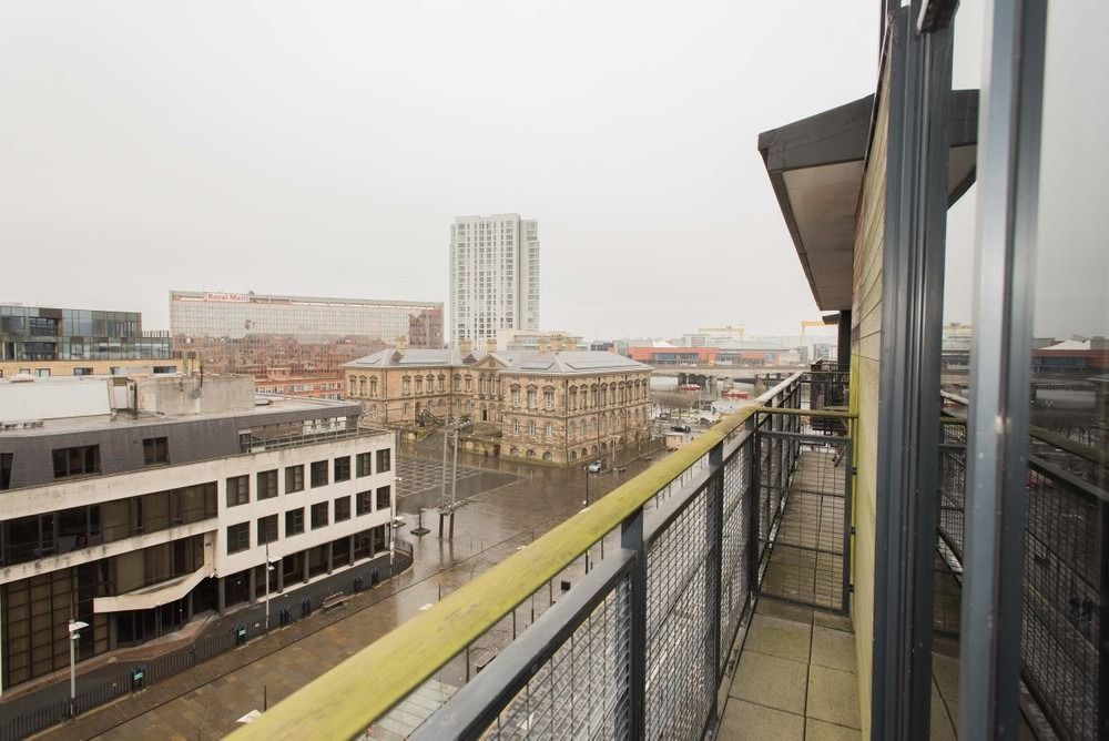 Queens Square is a stylish development located in the very heart of Belfast City Centre and is within walking distance of business, retail and the social centre of Belfast. The property is also accessible to the motorway network and minutes away from central train station, providing easy commuting to further afield. A prime city centre location with magnificent views.