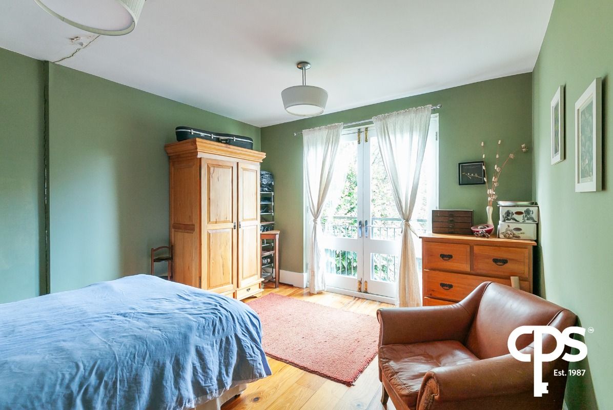 Solid wooden flooring double bedroom and access to a balcony area overlooking the back garden.