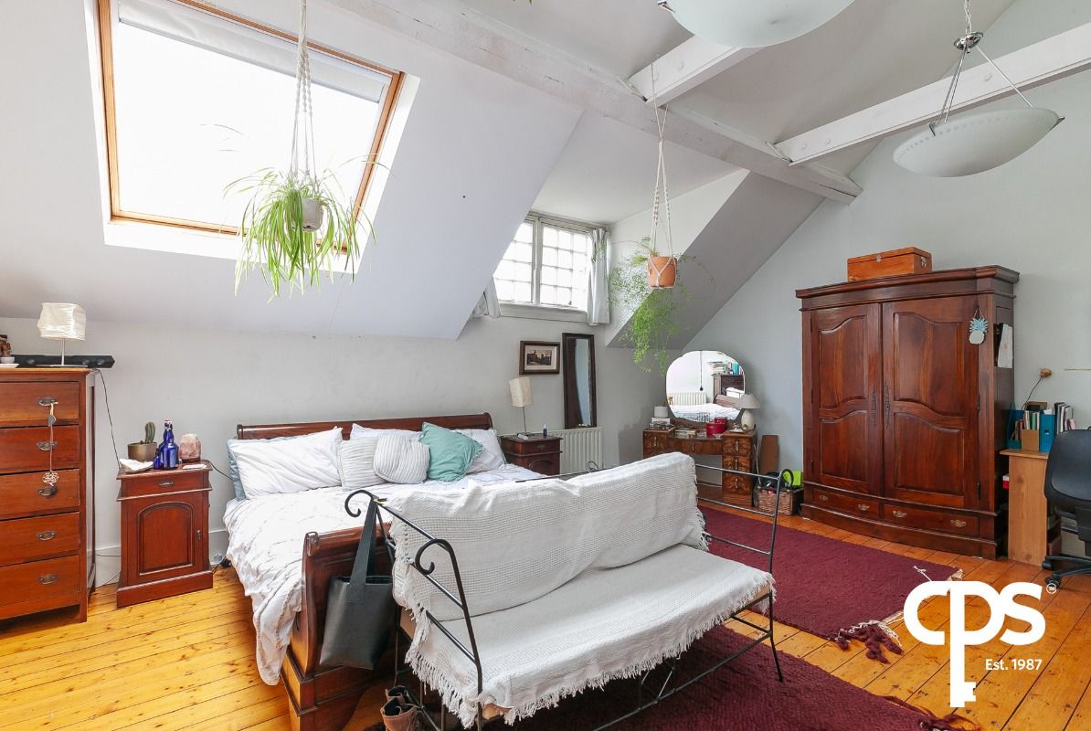 Substantially sized double bedroom with wooden flooring and copious amounts of natural light from Velux window. The room also benefits from a walk-in wardrobe and en-suite.