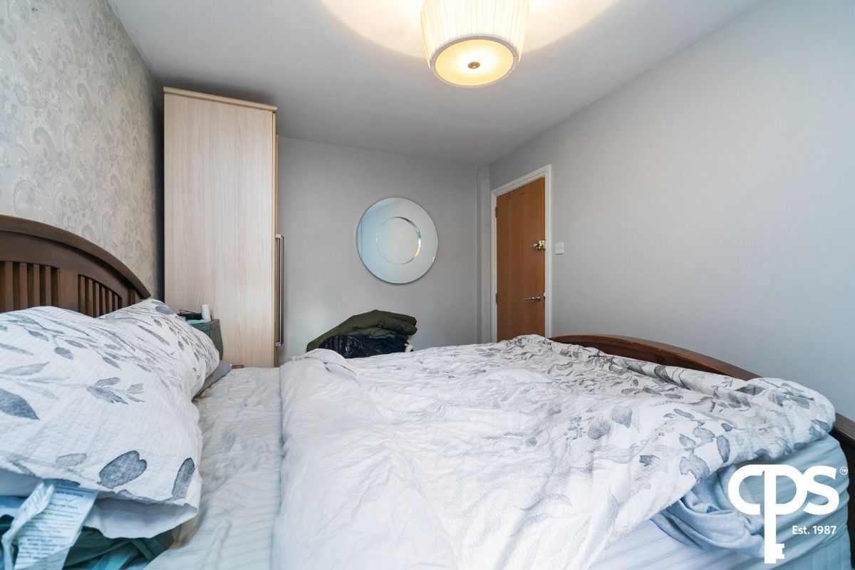 Double bedroom with laminate wooden floors throughout. This second bedroom boasts built in storage.