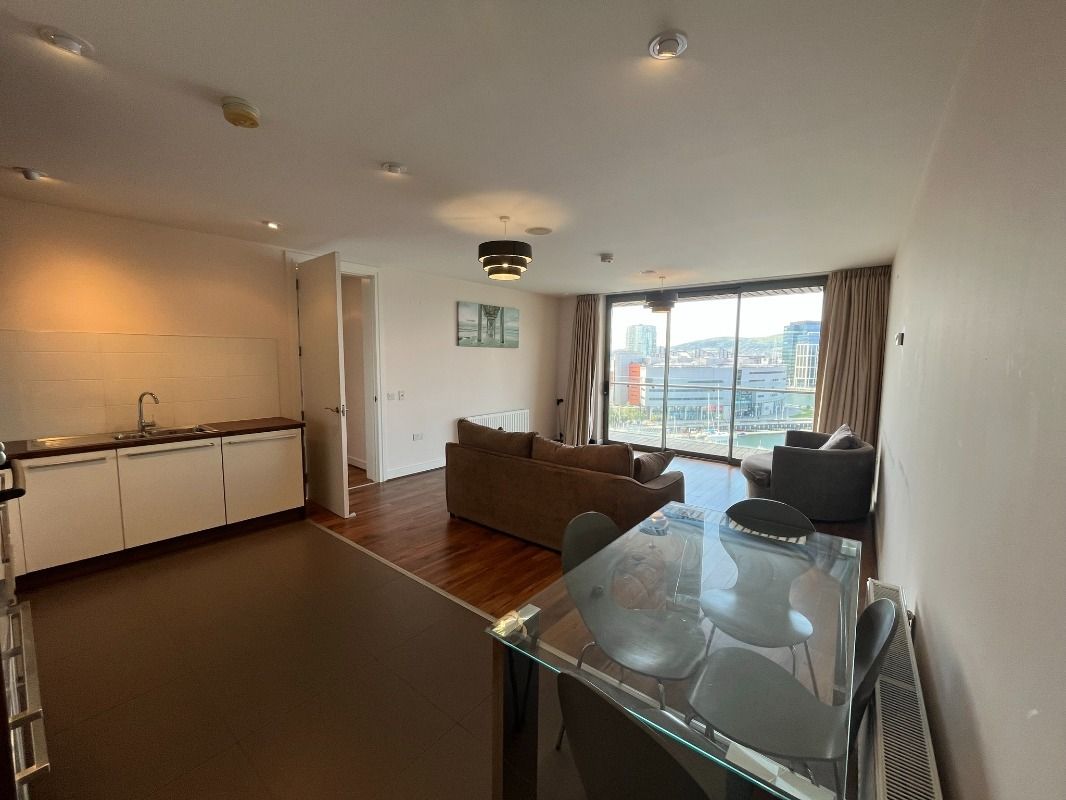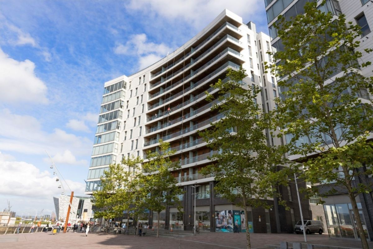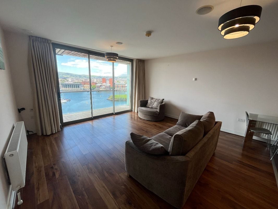 The apartment itself is outstanding, boasting two double bedrooms (Master with ensuite), a modern bathroom and a large open plan lounge/kitchen with floor to ceiling windows and stunning views over Abercorn Basin, The Lagan and the Titanic Building.