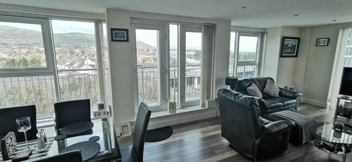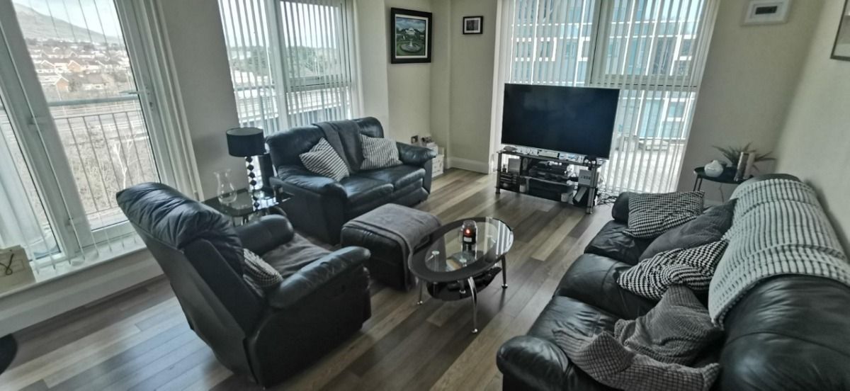 The apartment boasts superb views across the Black Mountain from the private balcony accessed via patio doors from the main living area. A second balcony can be accessed through two of the bedrooms. The apartment benefits from Gas Central Heating and uPVC Triple Glazed windows to ensure a comfortable living environment. The property benefits from Gated Secure Parking. Finally the apartment benefits from the use of the large communal roof top terrace.