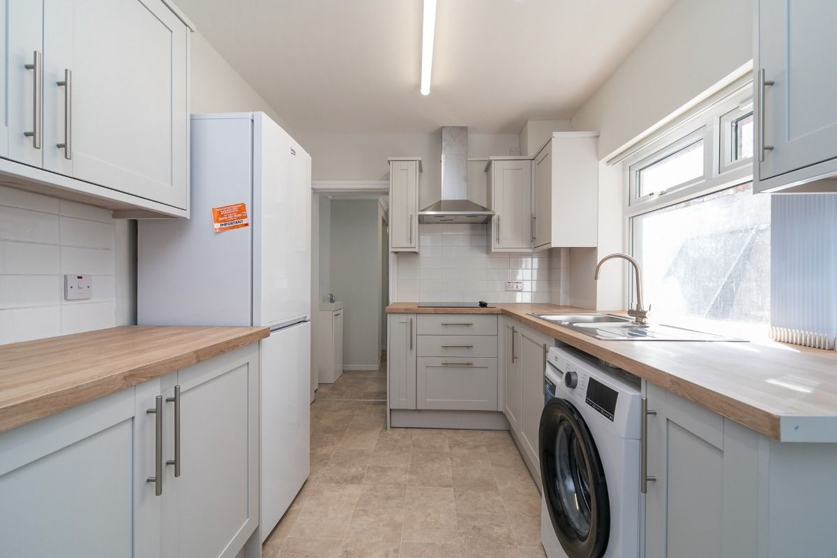 Includes oven, hob, fridge-freezer, microwave, washing machine, and plenty of cupboard space. -