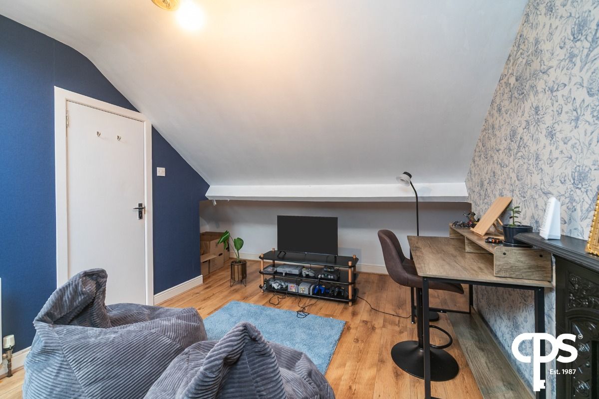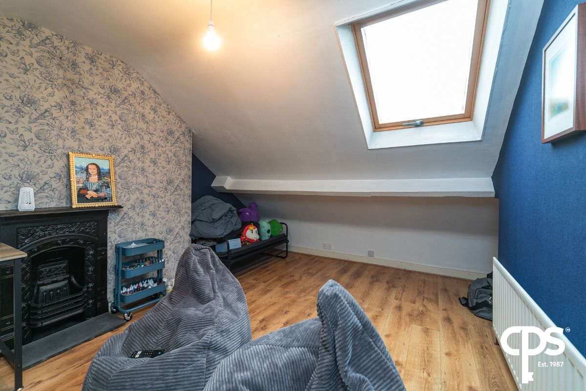 Versatile third bedroom with laminate wood effect flooring, velux window and feature cast iron fireplace this room opens up many possibilities such as third bedroom, study or games room.