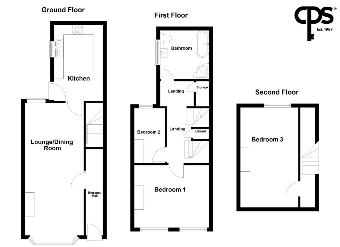 This well-presented home comprises of an entrance hall with carpet staircase through to open-plan living/dining room flooded with natural light through a large bay window to the front of the property. The kitchen is fully fitted with a range of high- and low-level units, with sleek finish and space for breakfast bar dining. The split-level first floor of this stunning home holds two well—proportioned bedroom and a modern family bathroom. The third and final floor composes a bright and spacious room ideal for third bedroom, study or games room.