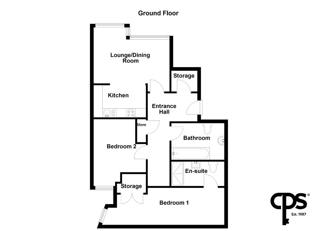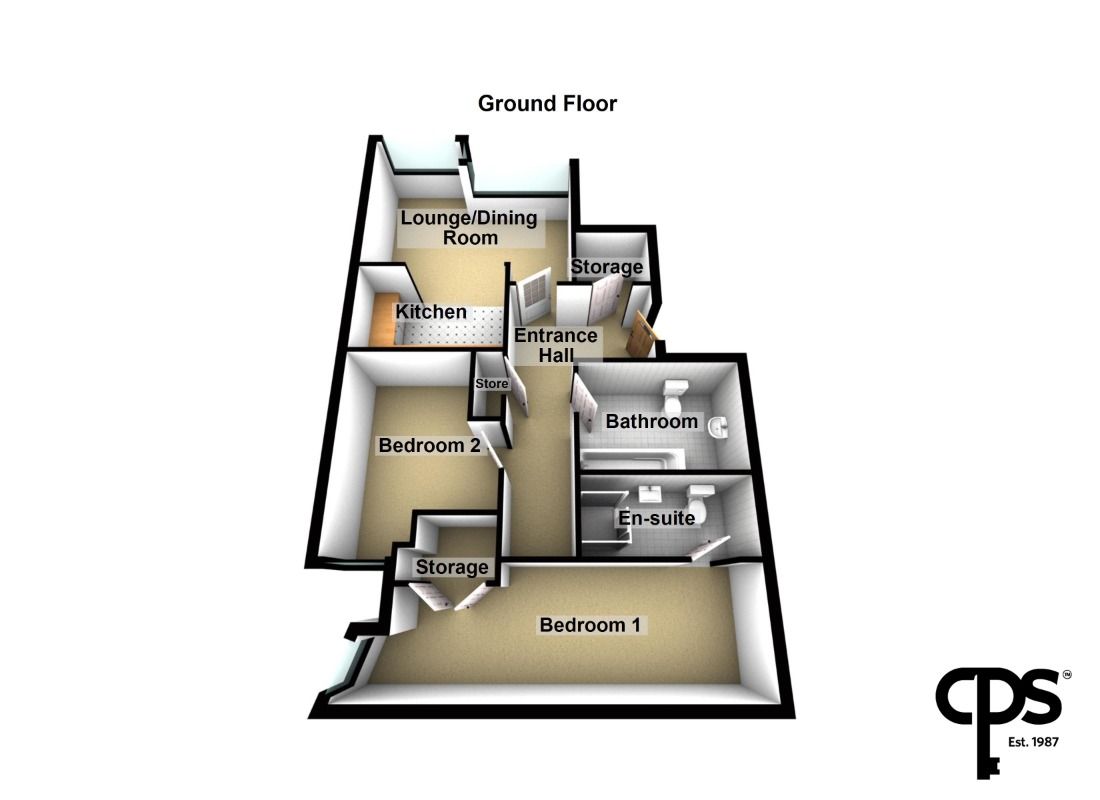 Accommodation comprises two generous double bedrooms, including an impressive principal suite with built-in storage and a stylish en-suite shower room, together with a well-appointed main bathroom.