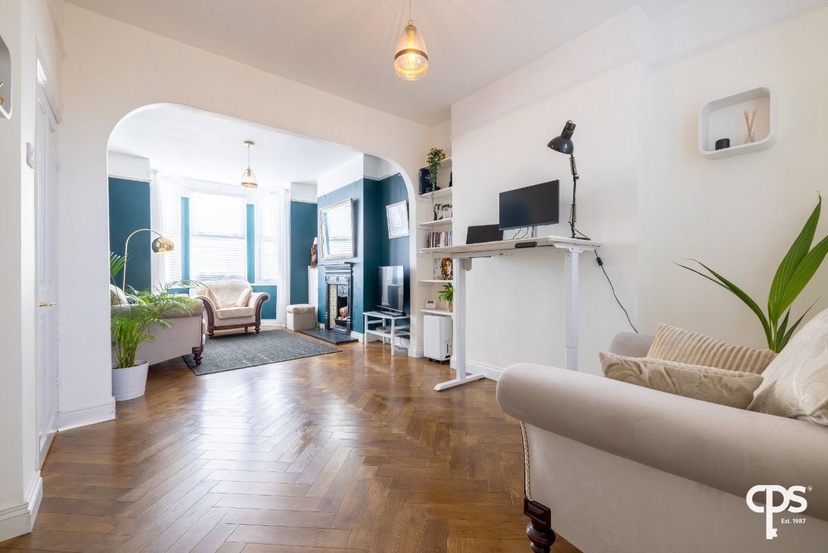 You are welcomed by a bright entrance hall, finished with attractive tiled flooring leading through to the main living area. The home opens into a spacious living/dining room centred around an original fireplace, fully fitted stylish kitchen with direct access to partially decked rear yard.