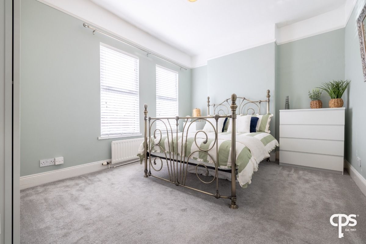 A bright and generously proportioned bedroom, benefitting from excellent natural light and ample space for a range of freestanding furniture. This room is finished with carpet flooring adding warmth and comfort underfoot. This bedroom has a well-balanced layout making it ideal for practical storage options and a calm atmosphere.