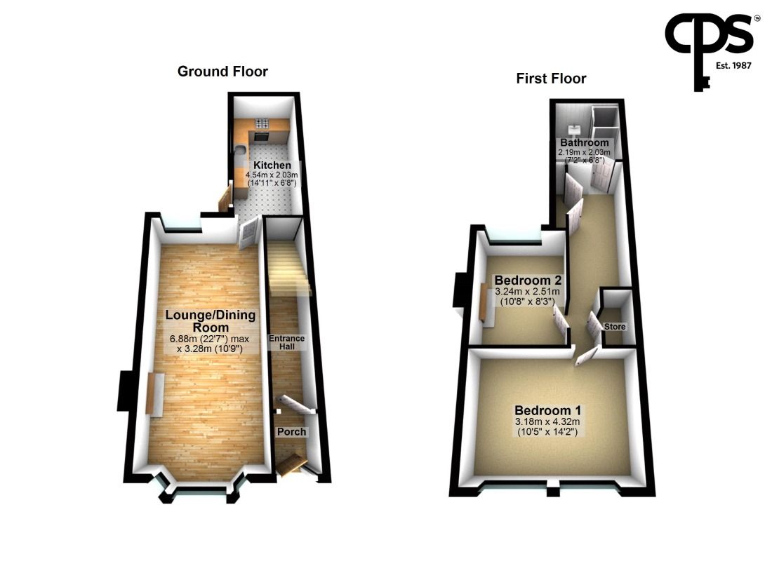 The first-floor hosts two well-proportioned bedroom flooded with natural light, with the second featuring charming fireplace. To finish this first-floor accommodation is a modern bathroom with three-piece suite and two storage cupboards on the landing.