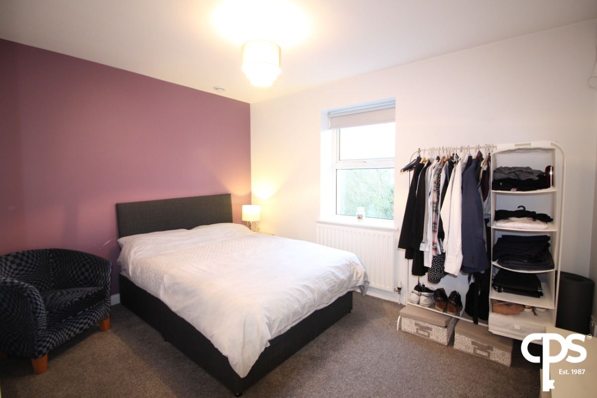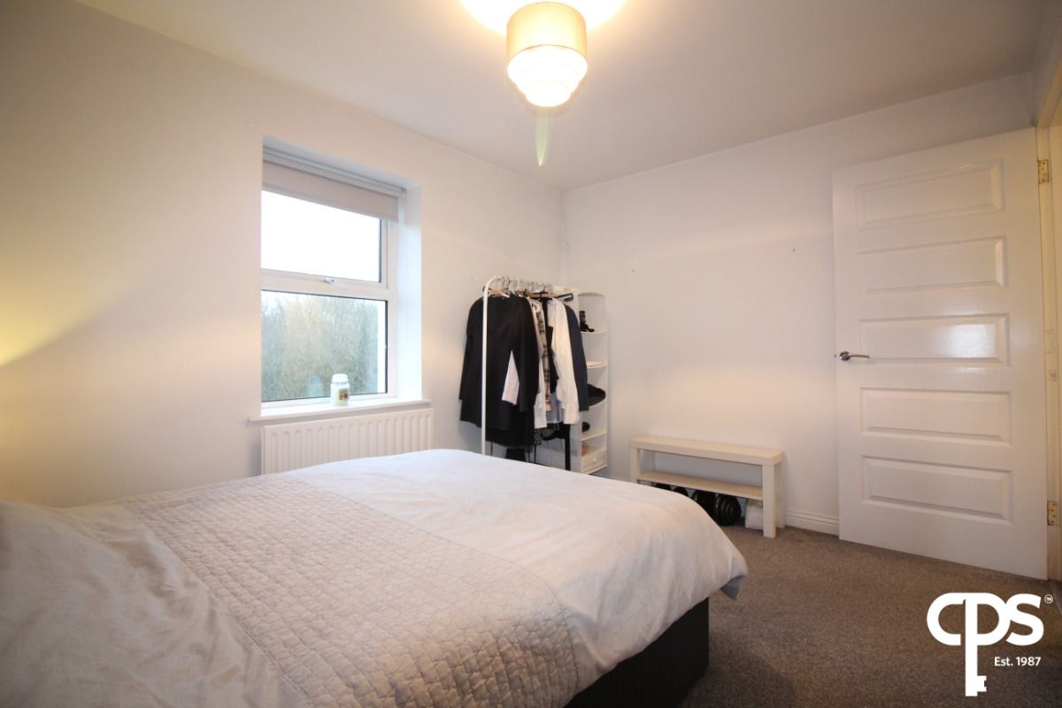 Well-proportioned second double bedroom, ideal for guests or use as a home office, benefiting from ample natural light and carpet flooring.