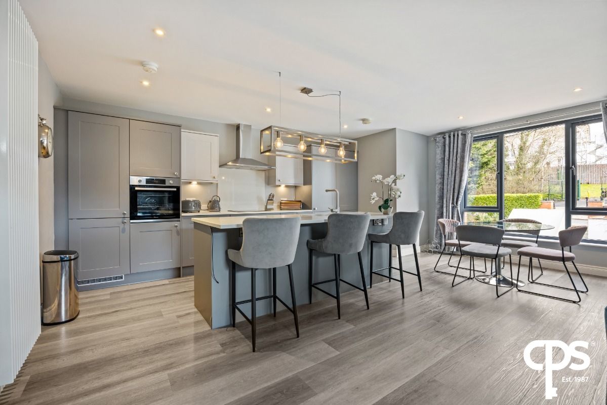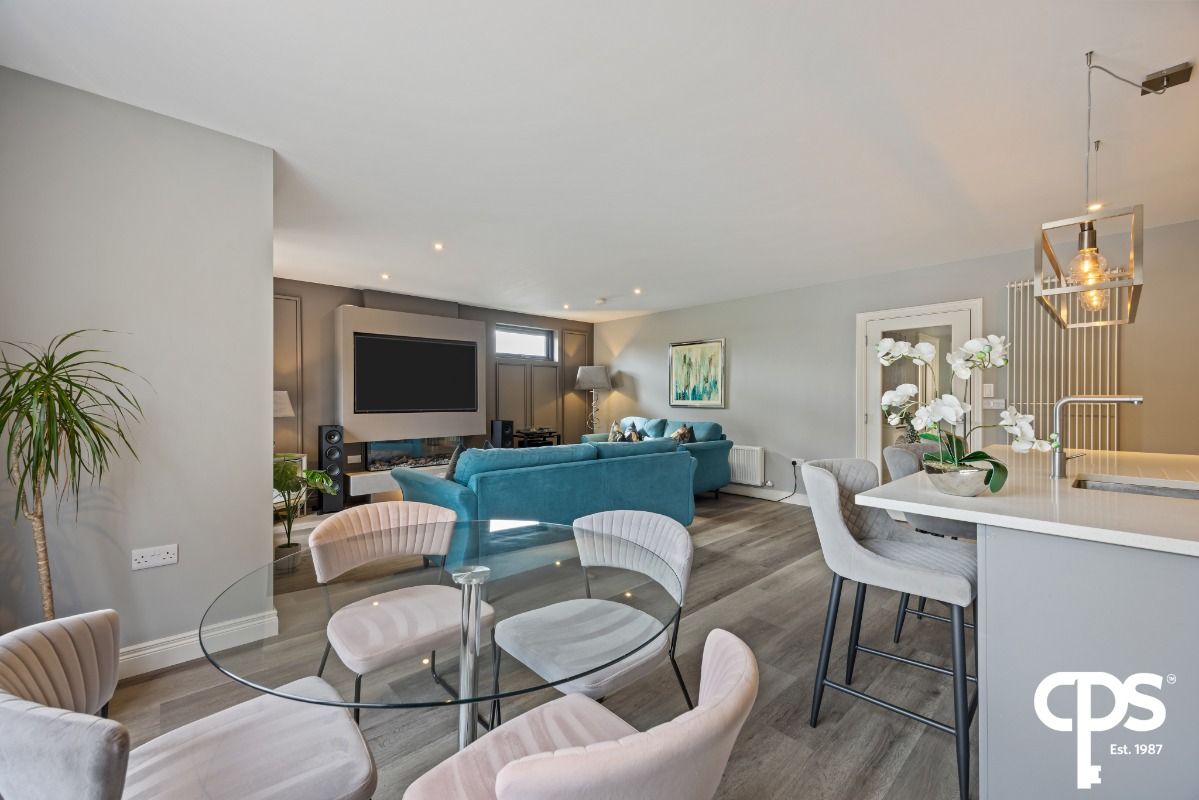 Internally, no detail has been overlooked, with the apartment finished to an excellent standard throughout. The accommodation is accessed via a welcoming entrance hall, which also benefits from a double storage cupboard fitted with utility units, worktop space and plumbing for a washing machine. The hallway leads to three well-proportioned bedrooms, including a spacious principal bedroom with ensuite. The heart of the home is the bright open-plan living, dining and kitchen area, ideal for both everyday living and entertaining. The property is further complemented by a contemporary main bathroom suite finished with quality fittings.