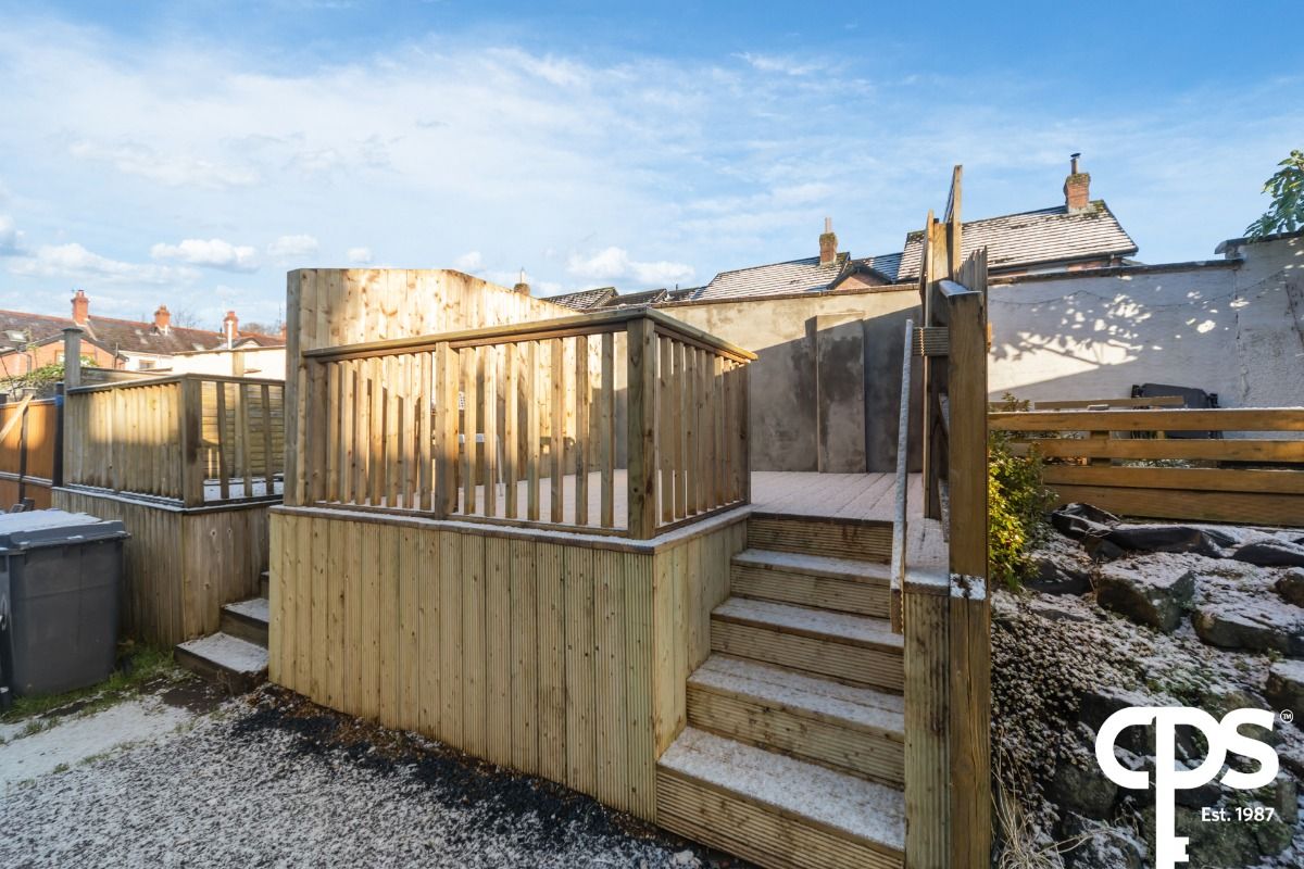 To the rear, the property benefits from a private enclosed yard and raised decking area — perfect for outdoor seating and low-maintenance enjoyment.