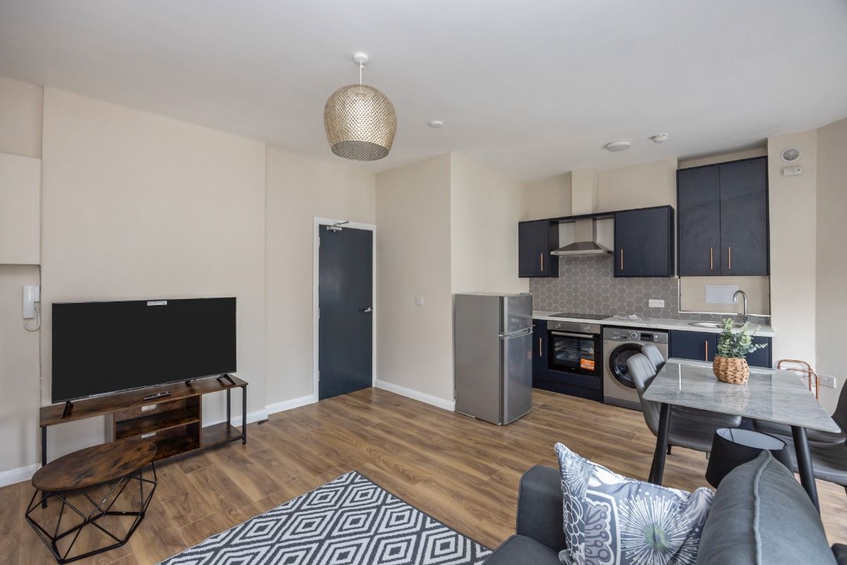 Upon entering the building, you are welcomed by a well-maintained communal hallway, with the apartment itself accessed privately off this space. Inside, you’ll find a bright and spacious open-plan living, kitchen, and dining area—perfect for relaxing or entertaining. The contemporary kitchen is fully equipped, seamlessly blending functionality with sleek design.