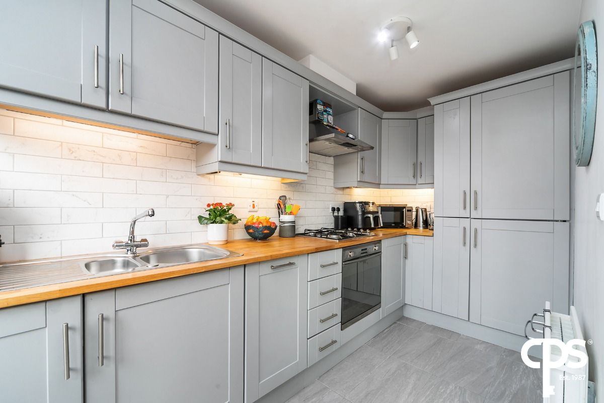 Modern kitchen finished to a high standard, offering plenty of storage space through high and low units, and recently installed worktops. Sleek, contemporary design with a practical layout.