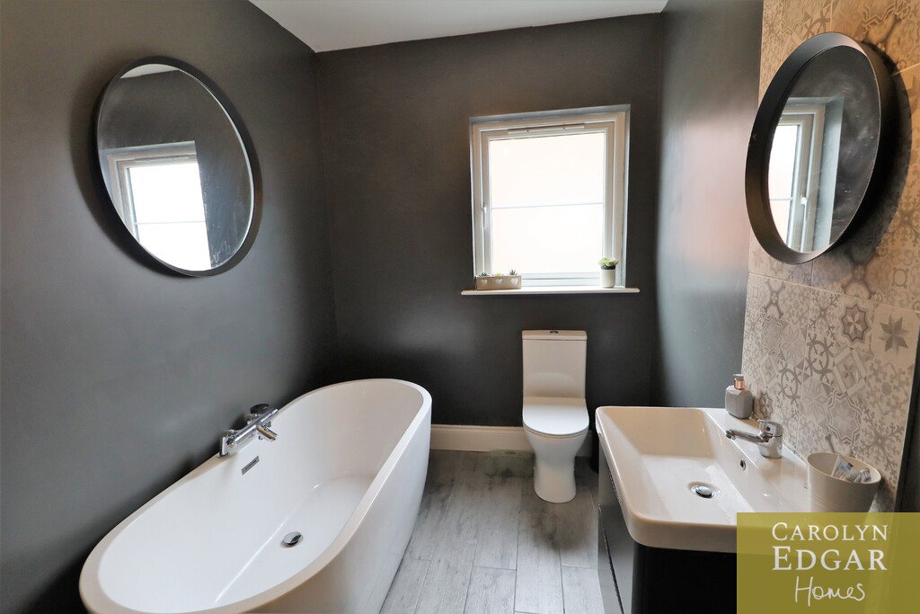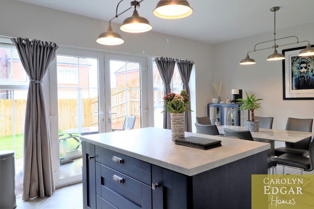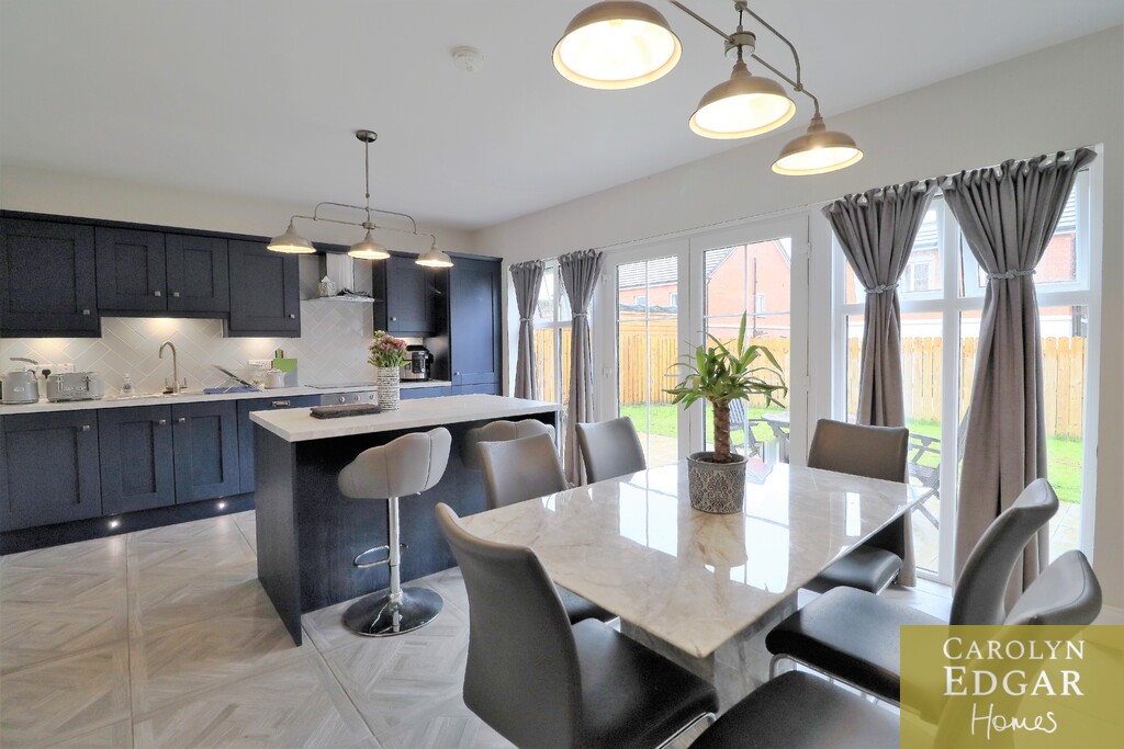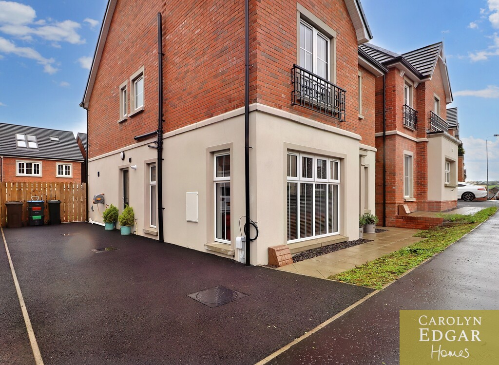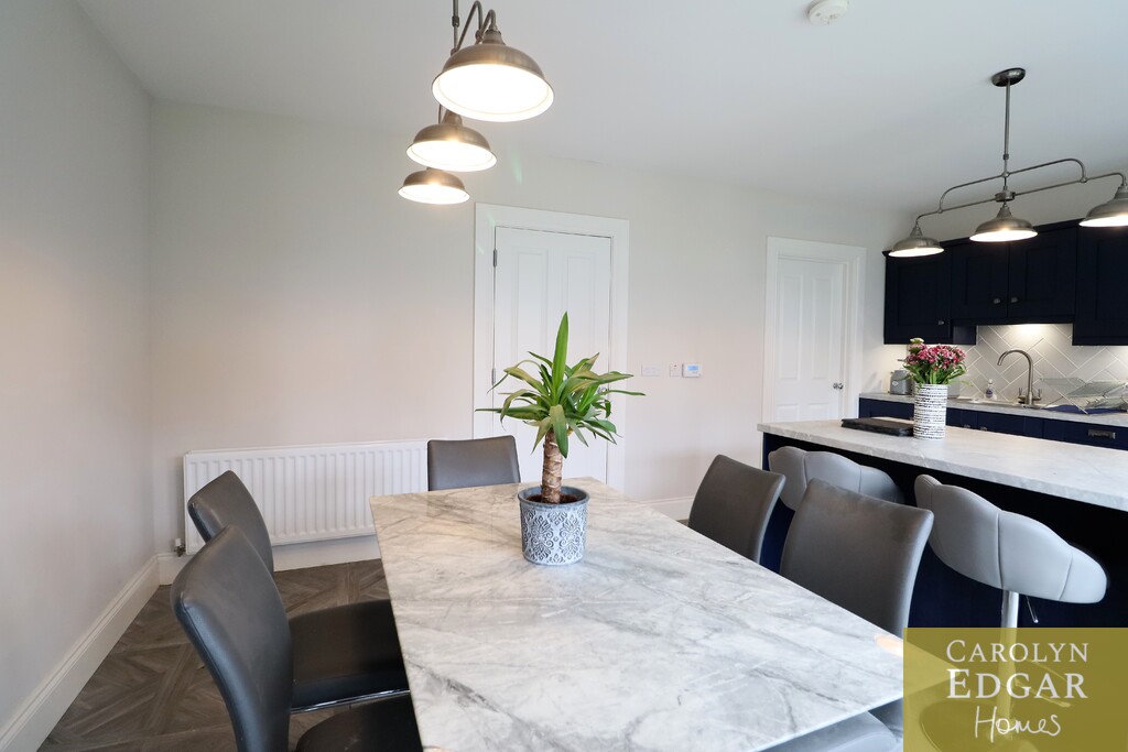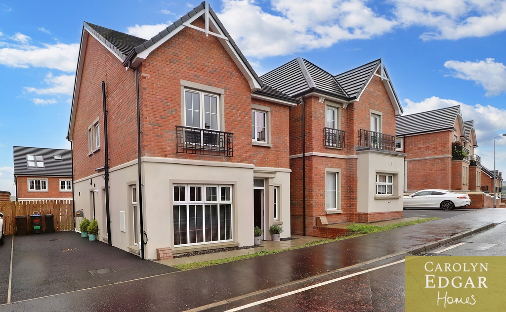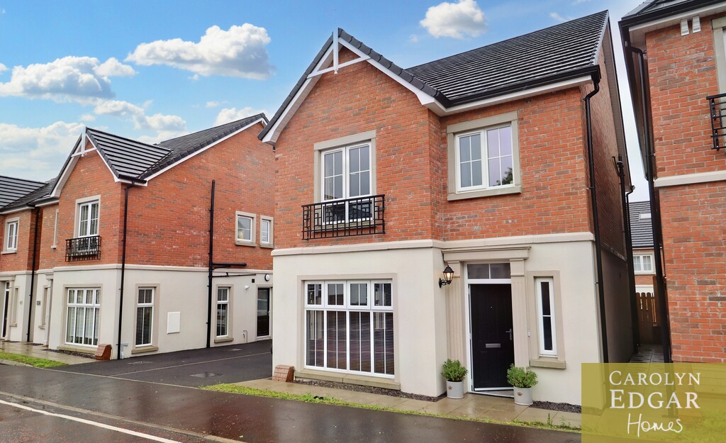 Set over three floors this stylish property is perfectly positioned in a quiet location within easy reach to main arterial links to Belfast, Newtownards and Bangor as well as many local amenities, Retail parks, restaurants, cinema, Comber Greenway and David Lloyd health club and will have huge appeal for those looking for a stylish and contemporary home in a peaceful but convenient location. Internally the property comprises of spacious entrance hallway, large modern dual aspect lounge, contemporary open plan kitchen with centre island, casual dining area with French doors to paved sun terrace, separate utility room with access to driveway and downstairs bathroom. On the first floor are three spacious bedrooms, one currently used as second reception and contemporary family bathroom with free standing bath. The generous master suite is on the second floor with feature vaulted ceiling and windows flooding the room with natural light, and ensuite shower room. Externally the property has large tarmacked driveway to the side providing ample car parking for several cars and to the rear are sizeable private enclosed gardens laid in lawn and paved sun terrace.