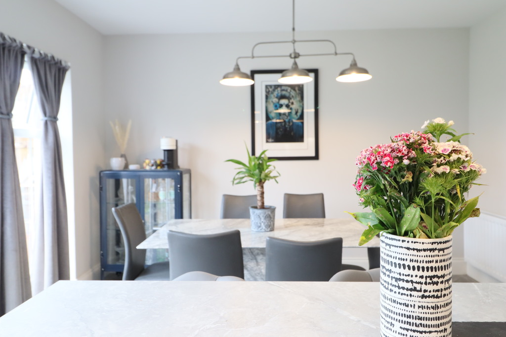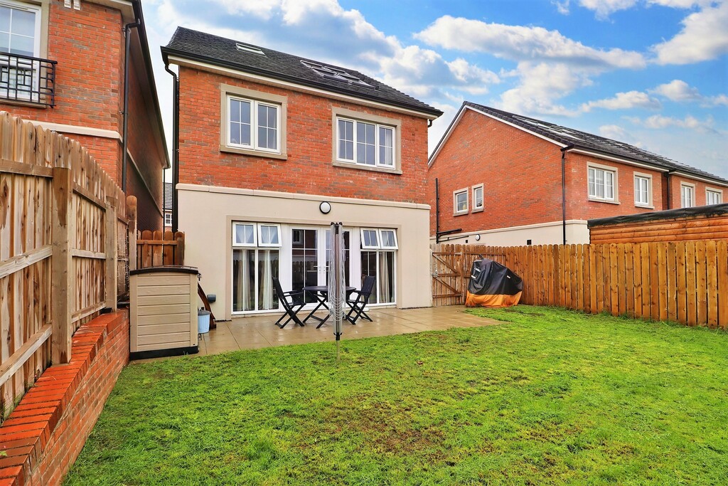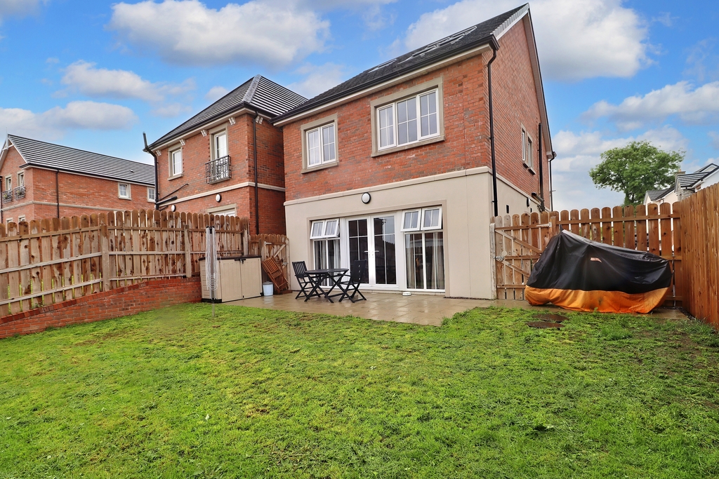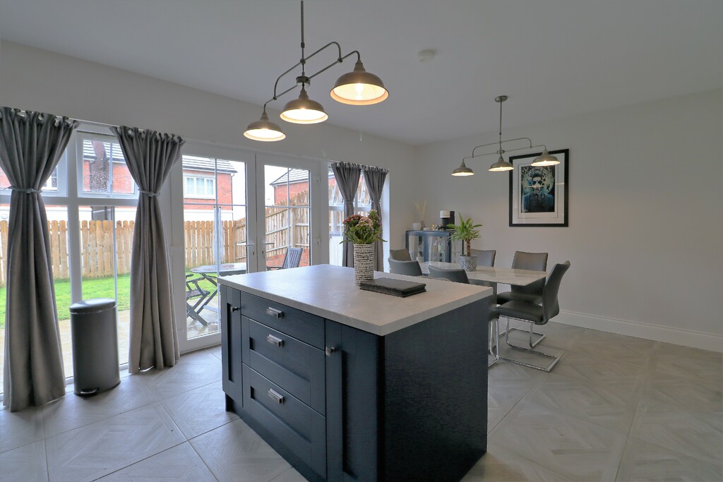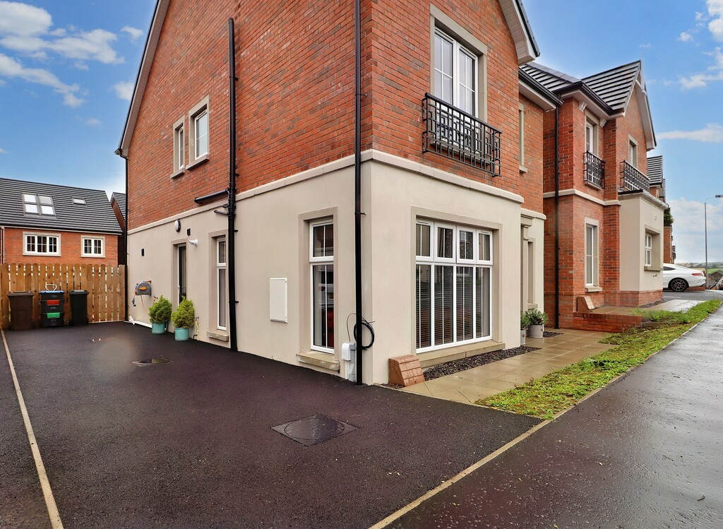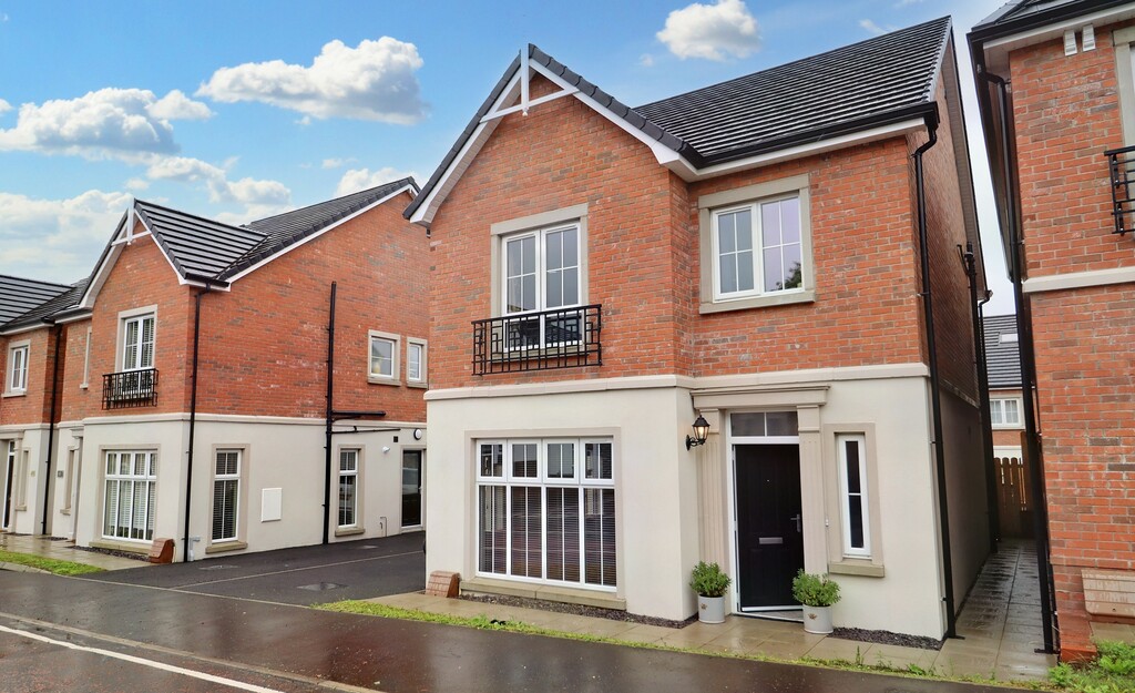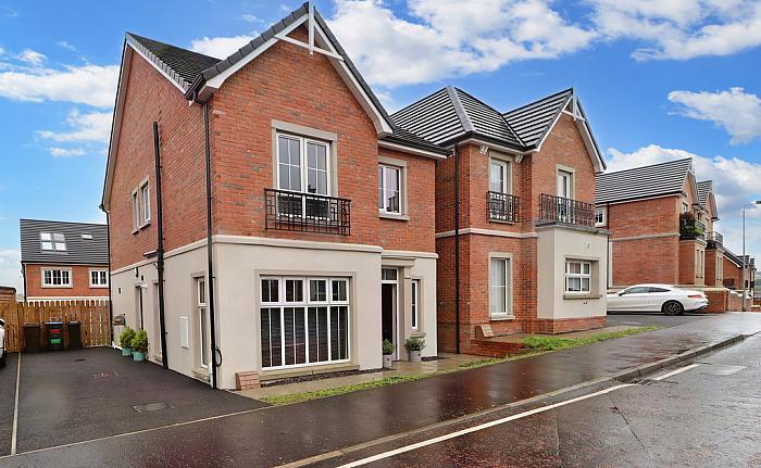 Set over three floors this stylish property is perfectly positioned in a quiet location within easy reach to main arterial links to Belfast, Newtownards and Bangor as well as many local amenities, Retail parks, restaurants, cinema, Comber Greenway and David Lloyd health club and will have huge appeal for those looking for a stylish and contemporary home in a peaceful but convenient location. Internally the property comprises of spacious entrance hallway, large modern dual aspect lounge, contemporary open plan kitchen with centre island, casual dining area with French doors to paved sun terrace, separate utility room with access to driveway and downstairs bathroom. On the first floor are three spacious bedrooms, one currently used as second reception and contemporary family bathroom with free standing bath. The generous master suite is on the second floor with feature vaulted ceiling and windows flooding the room with natural light, and ensuite shower room. Externally the property has large tarmacked driveway to the side providing ample car parking for several cars and to the rear are sizeable private enclosed gardens laid in lawn and paved sun terrace.