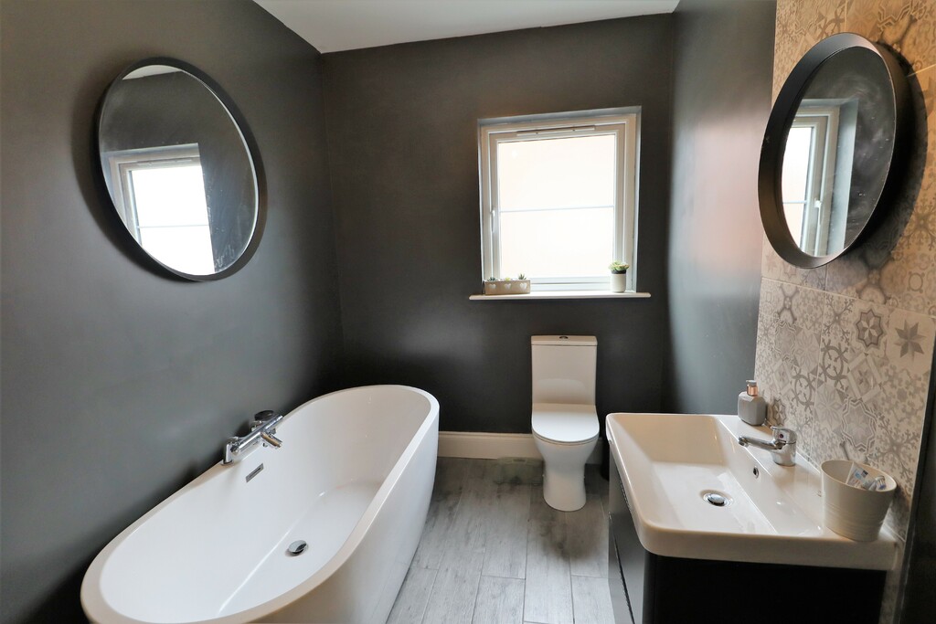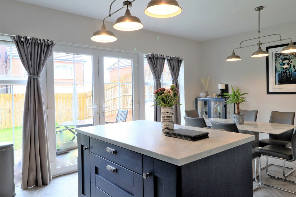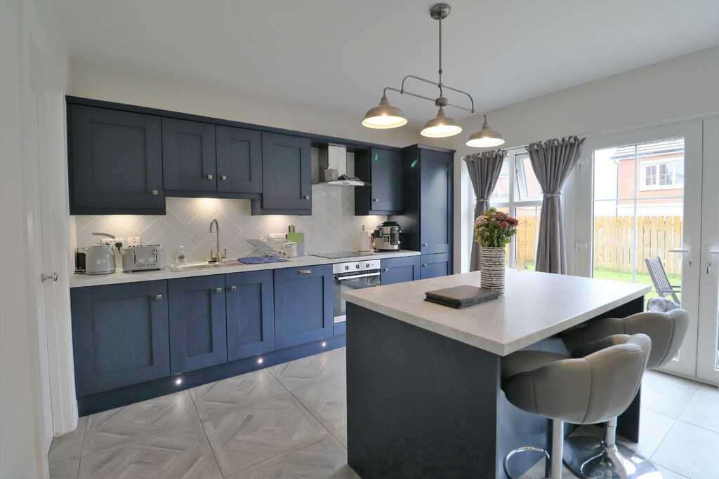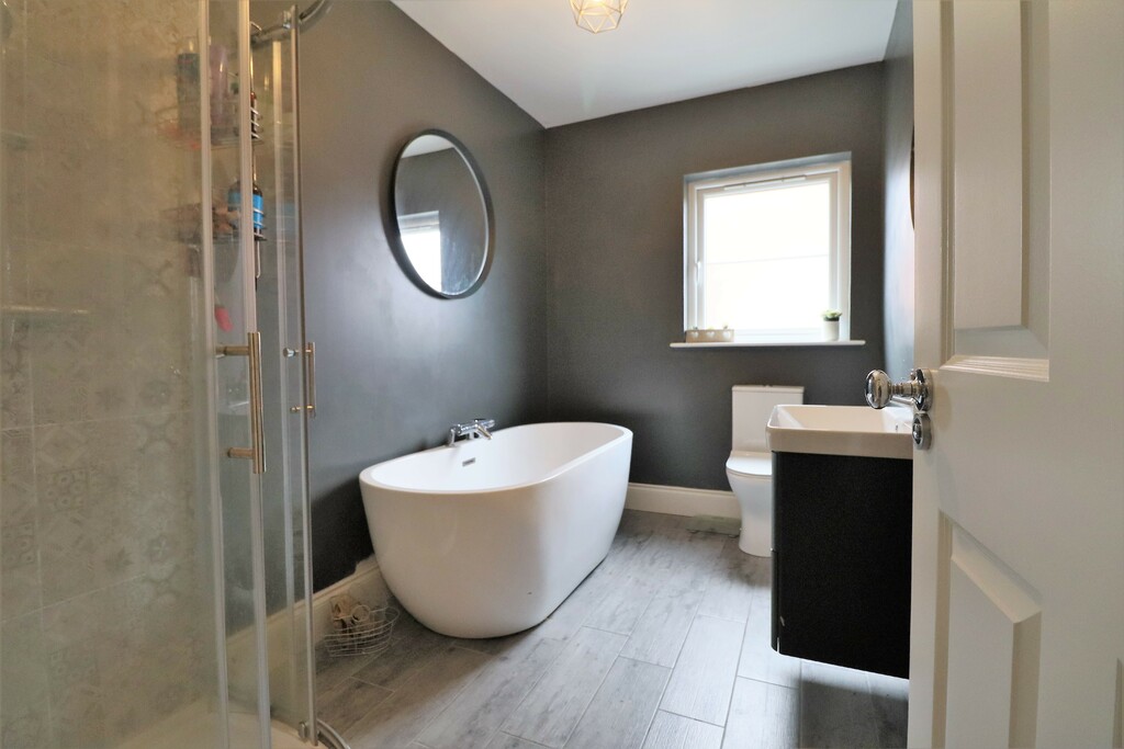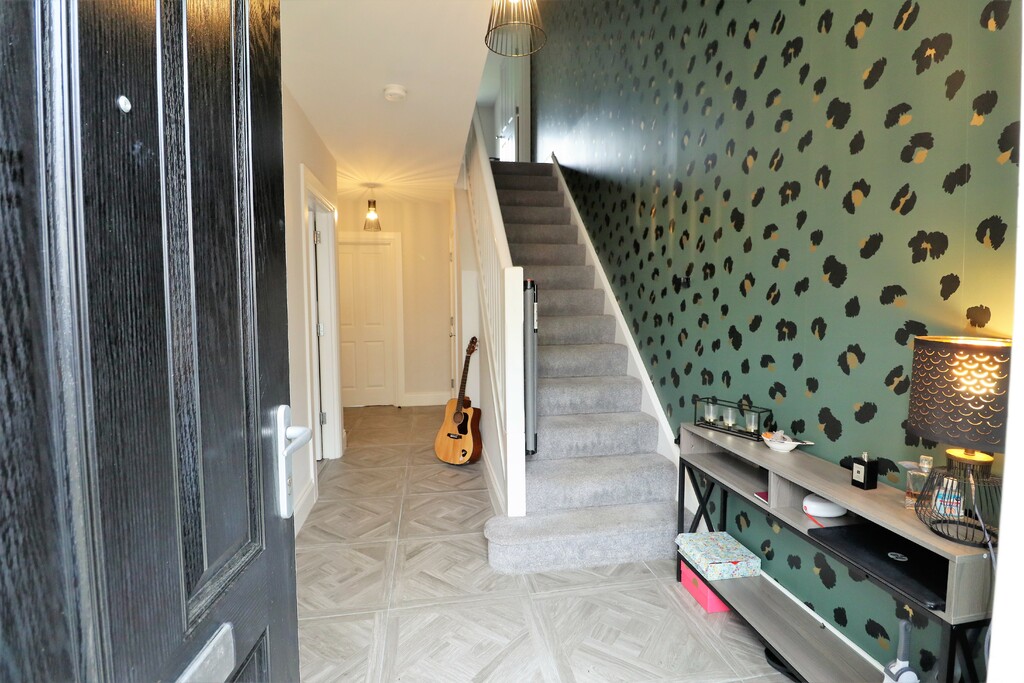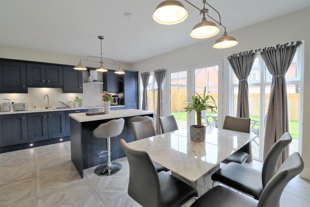 Set over three floors this stylish property is perfectly positioned in a quiet location within easy reach to main arterial links to Belfast, Newtownards and Bangor as well as many local amenities, Retail parks, restaurants, cinema, Comber Greenway and David Lloyd health club and will have huge appeal for those looking for a stylish and contemporary home in a peaceful but convenient location. Internally the property comprises of spacious entrance hallway, large modern dual aspect lounge, contemporary open plan kitchen with centre island, casual dining area with French doors to paved sun terrace, separate utility room with access to driveway and downstairs bathroom. On the first floor are three spacious bedrooms, one currently used as second reception and contemporary family bathroom with free standing bath. The generous master suite is on the second floor with feature vaulted ceiling and windows flooding the room with natural light, and ensuite shower room. Externally the property has large tarmacked driveway to the side providing ample car parking for several cars and to the rear are sizeable private enclosed gardens laid in lawn and paved sun terrace.