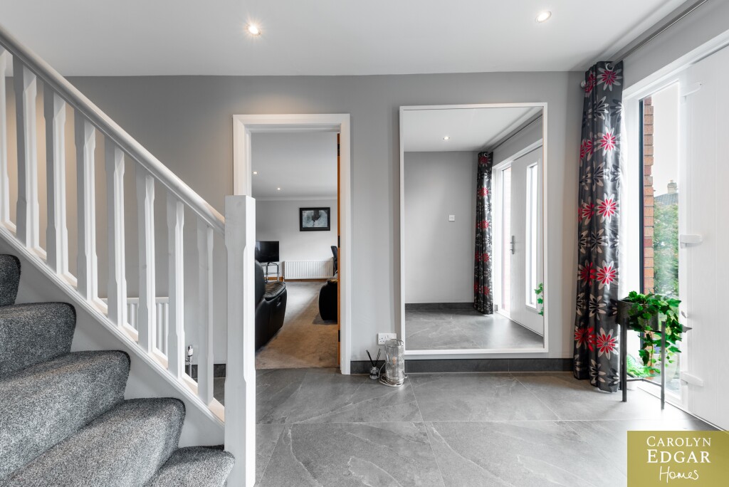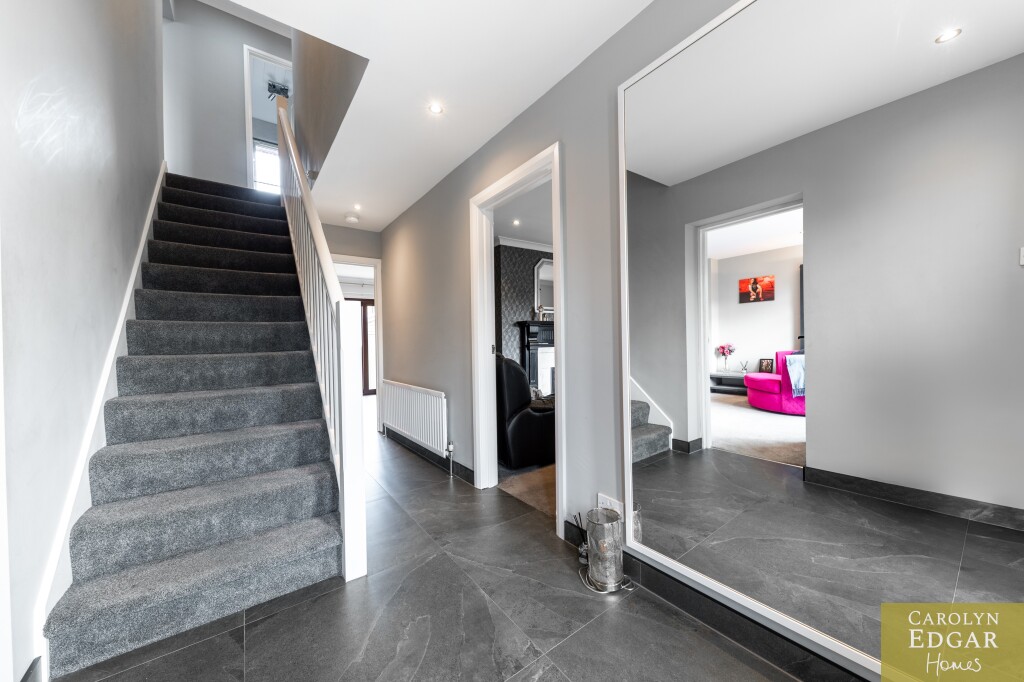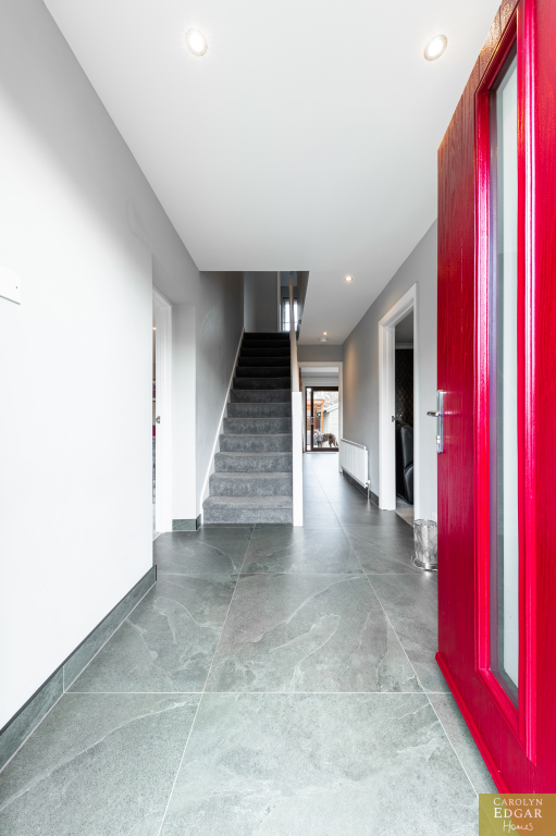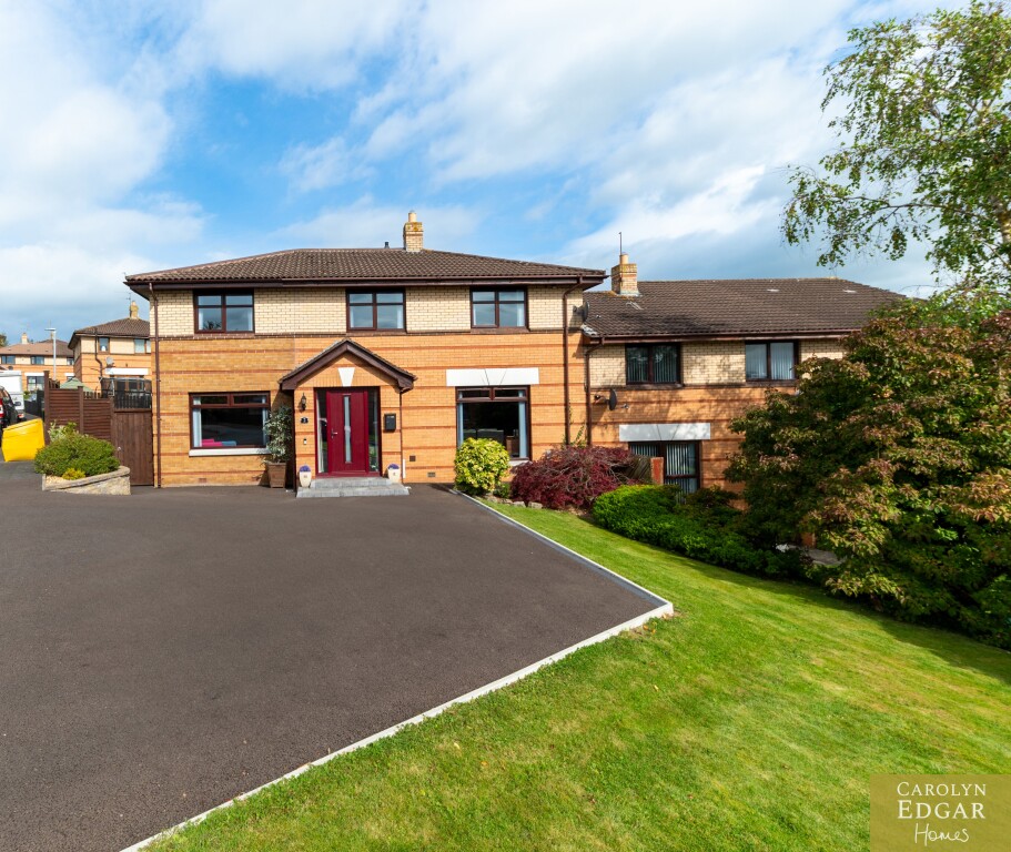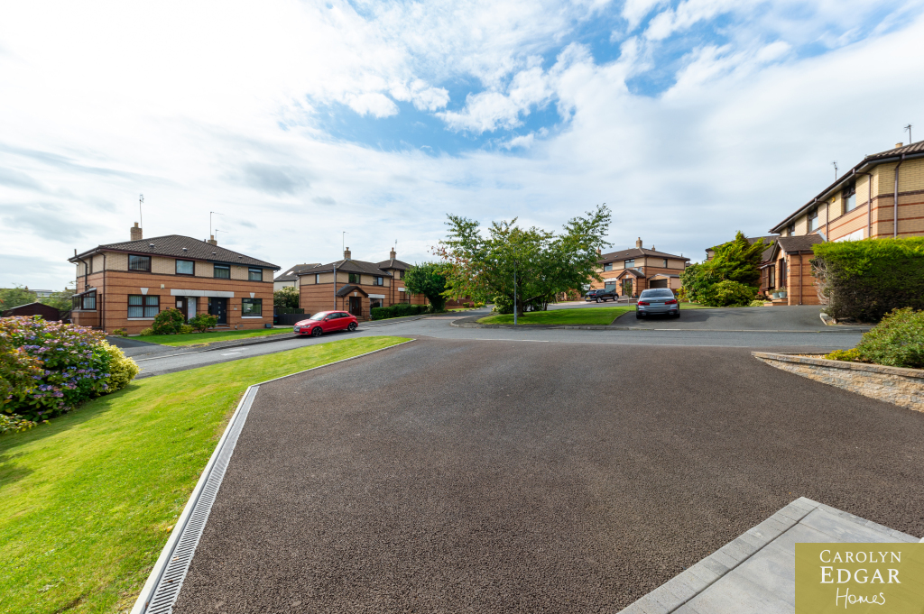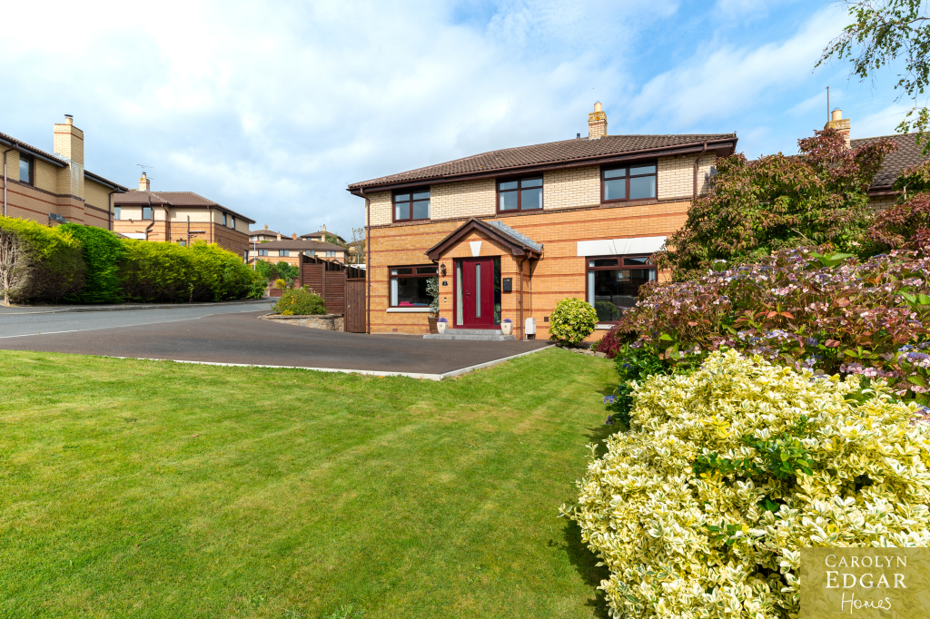 Extended in 2021 and renovated throughout this perfectly presented four bedroom home offers a wealth of spacious and modern living accommodation throughout. Situated on a large prime corner site in a quiet cul de sac the property is set in a convenient location within close reach of Glider routes to Belfast, main arterial links to Newtownards and Bangor as well as many local amenities, restaurants, coffee houses and cinema. For the more energetic of you David Lloyd health club and Comber Greenway are all within a short distance. Internally the property comprises of entrance hallway, spacious and bright modern lounge with feature wall mounted fire, second reception room with gas fire, recently fitted contemporary open plan fitted kitchen with dining area and patio doors out to the sunny rear gardens, utility room and downstairs bathroom. Upstairs there are four bedrooms, large master bedroom with dressing area, bedroom two with new modern ensuite and recently renovated contemporary family bathroom. Outside the property is set on a well maintained site with spacious gardens to the front and tarmac driveway providing ample car parking for several cars and to the side and rear are private enclosed gardens laid in lawn and paved sun terrace perfect for those sunny days and nights to sit, relax and unwind.
