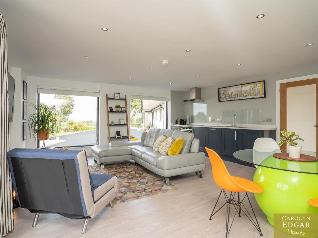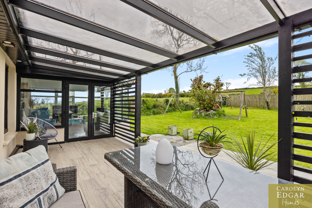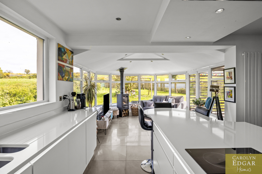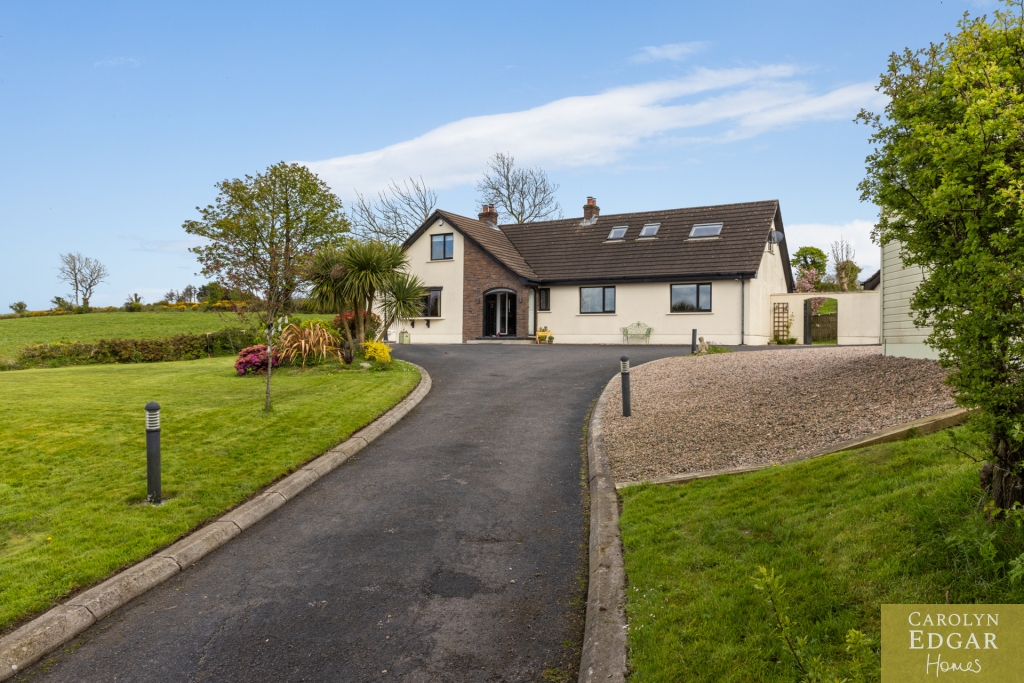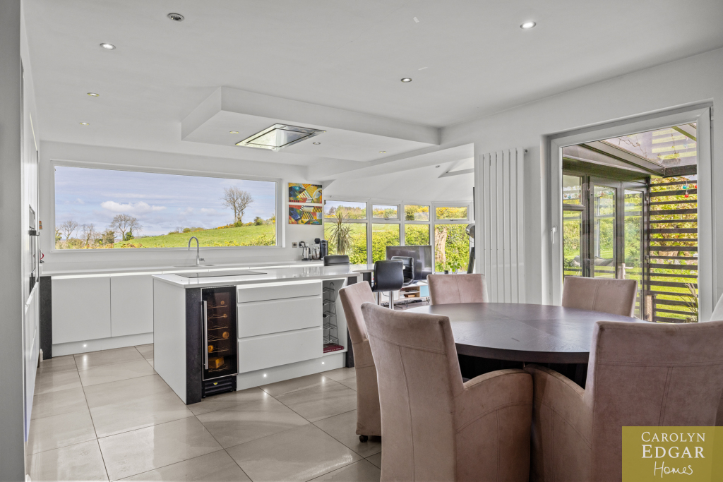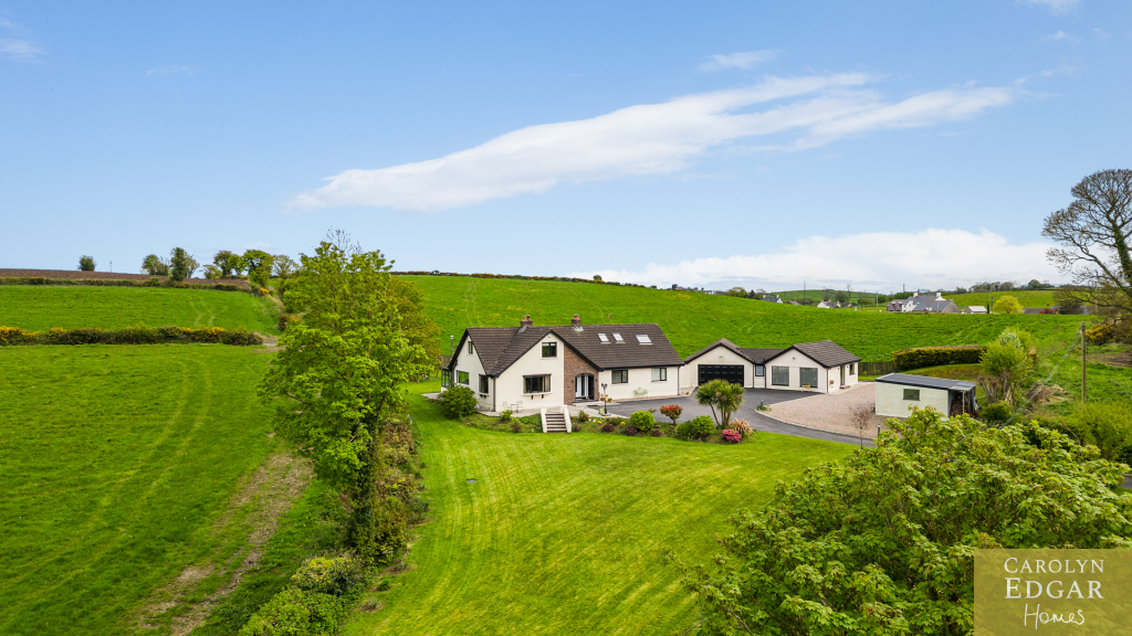 This stylish and contemporary five bedroom home is set on a prime elevated site with a delightful country back drop in an idyllic and peaceful county location. Nestled amongst green fields on an extensive site of circa 0.9 acres with fantastic views of the surrounding area and an impressive floor space of approx. 1700 sq. ft it really does offer a wealth of modern and flexible living accommodation whatever your family needs and with a fully contained spacious one bedroom annexe would be ideal for live in relatives, visiting friends or making an income from the comfort of your own home as an Air bnb.