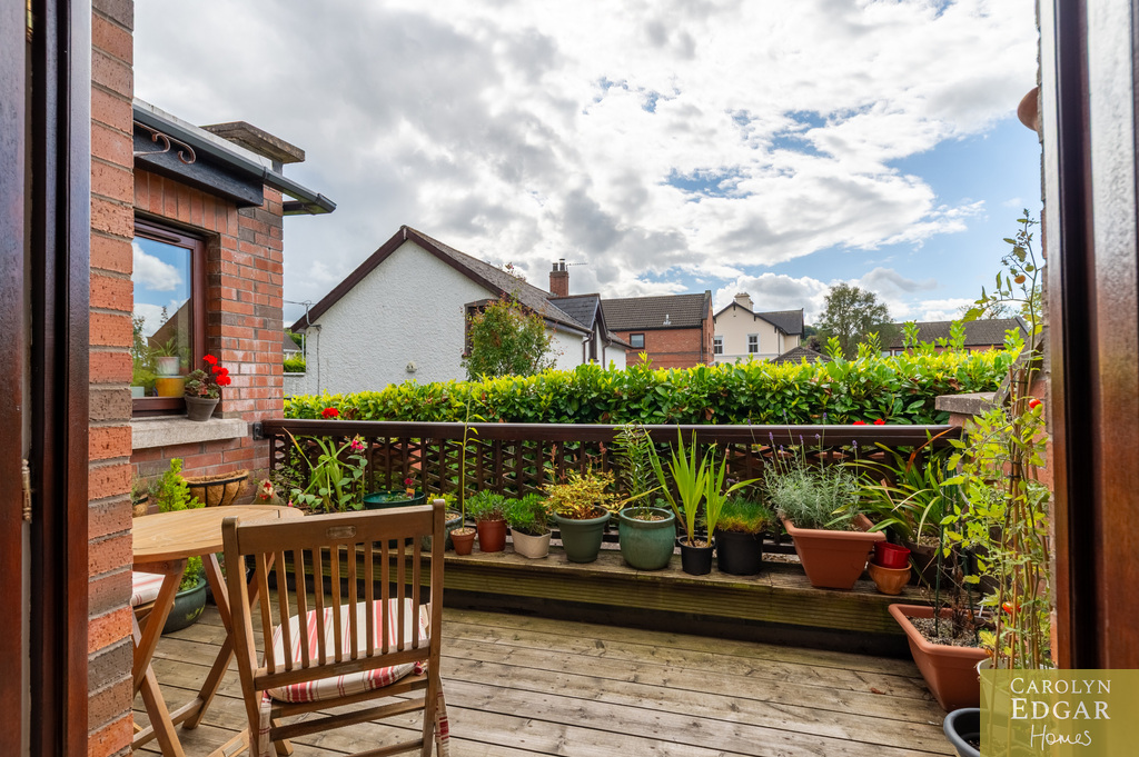 This spacious and immaculately presented two-bedroom apartment is set in a popular residential area in a prime location and is situated between two of the most sought-after areas in East Belfast, just a short distance to the popular and bustling Ballyhackamore village with its many cafes, shops, and restaurants as well as the popular Belmont Road and with the advantage of excellent transport/Glider routes to Belfast City Centre close at hand will appeal to a wide range of buyers due to its exceptional location, perfectly presented interior and large decked sunny balcony. The property offers comfortable and airy accommodation throughout with shared entrance door and stairwell leading up to landing and internally comprising of entrance hallway with built in storage and access to large loft, two well-presented double bedrooms, large modern bathroom and separate fitted kitchen with up to date built in appliances and range of built in high and low units. The spacious open plan lounge and dining area has French doors out to a large decked private balcony and as well as flooding the room with plenty of natural light provides that much desired outside space for relaxing or barbecuing and enjoying a glass or two