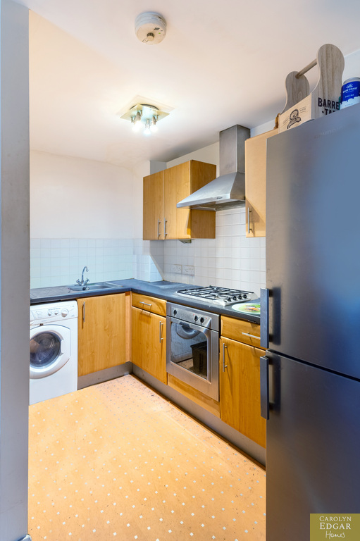 Internally, this first floor apartment comprises a bright and spacious lounge open plan to a fitted kitchen area with a range of built in units, one well-proportioned double bedroom, and a bathroom.