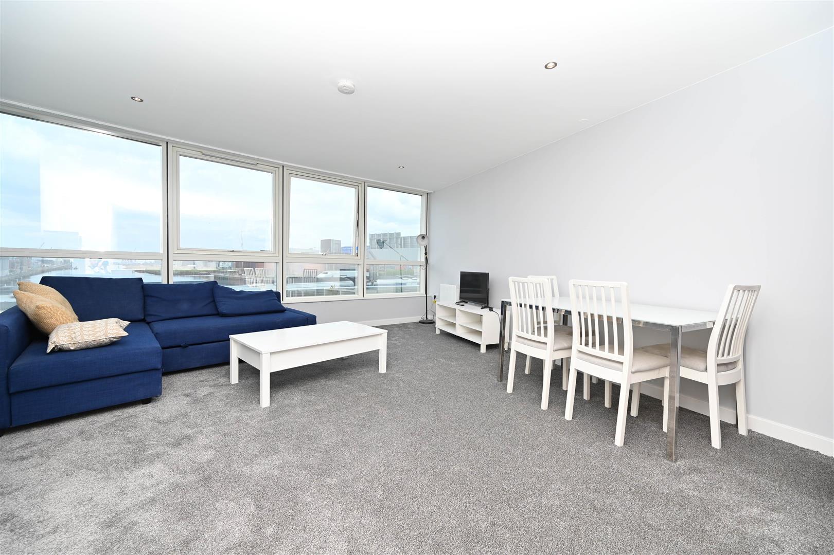 Internally the apartment comprises an entrance hall with utility cupboard for washer/dryer, a modern walnut fitted kitchen with built-in appliances open-plan to living/dining/kitchen area with stunning views over Belfast and the Titanic area, a master bedroom with an en-suite shower room, a further double bedroom and a modern bathroom with a white three-piece suite. Further benefits include electric heating & one secure underground parking space.