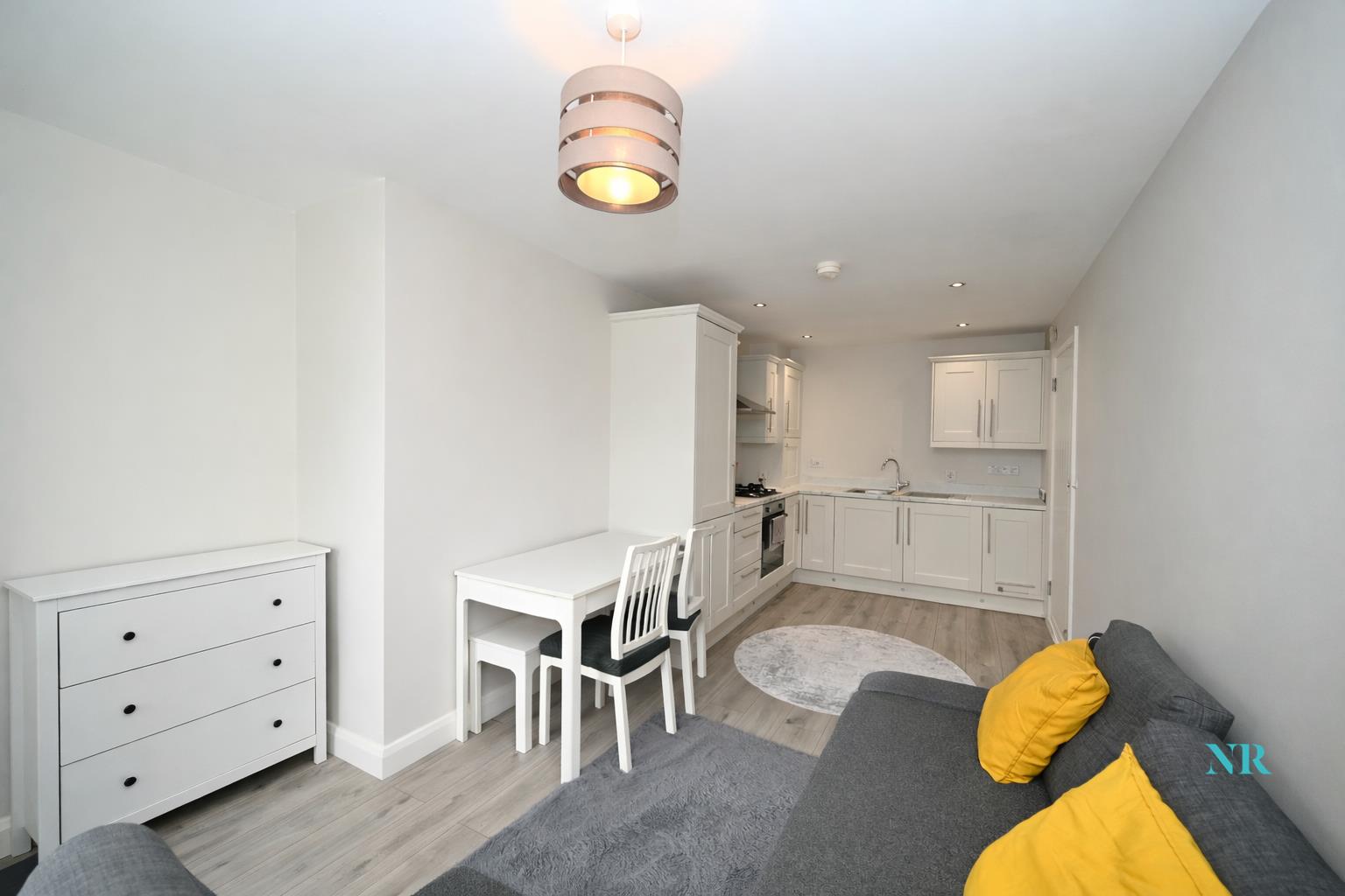 Internally, the property comprises a welcoming entrance hall, a modern fitted kitchen with a range of appliances open plan to a bright living and dining area, a spacious double bedroom, and a contemporary three-piece shower room.