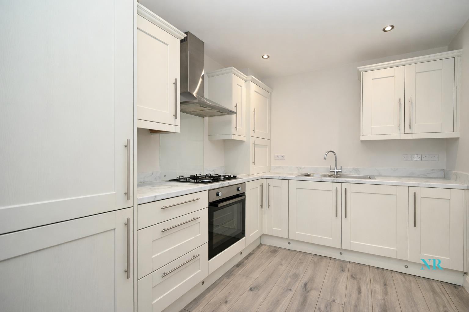 Contemporary fitted kitchen complete with integrated appliances
