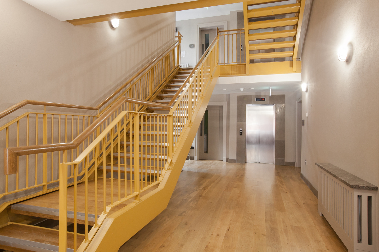 The warehouse style of this exceptional apartment development is more akin to a 5* Hotel. Features include an impressive entrance lobby with high ceilings, exposed stairwell, and part brick communal walls.