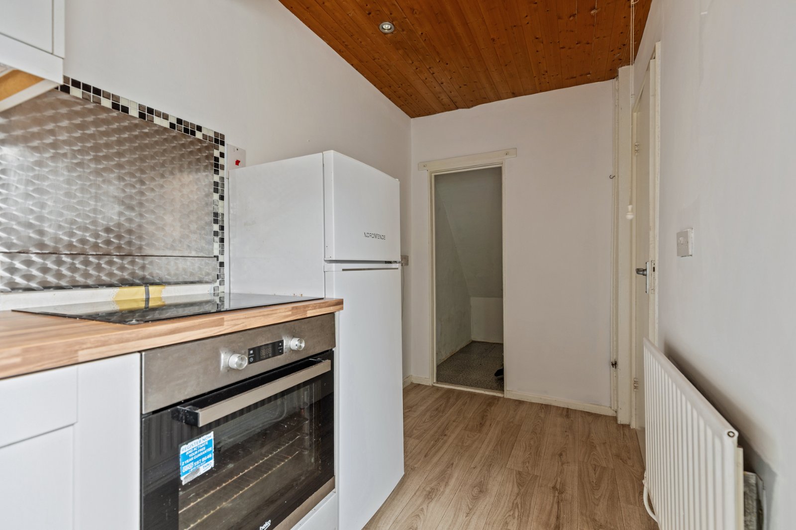 Modern fitted kitchen with excellent range of units, integrated oven and four ring hob, plumbed for washing machine, pantry, uPVC door to rear garden.