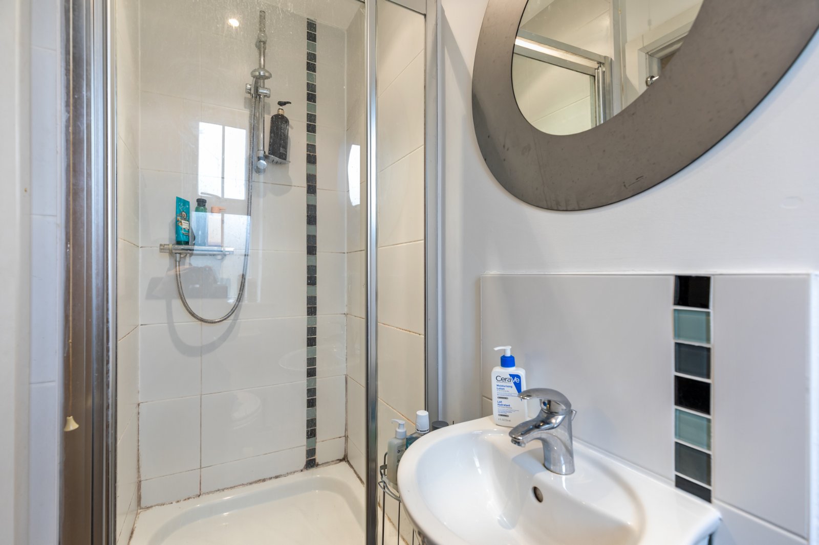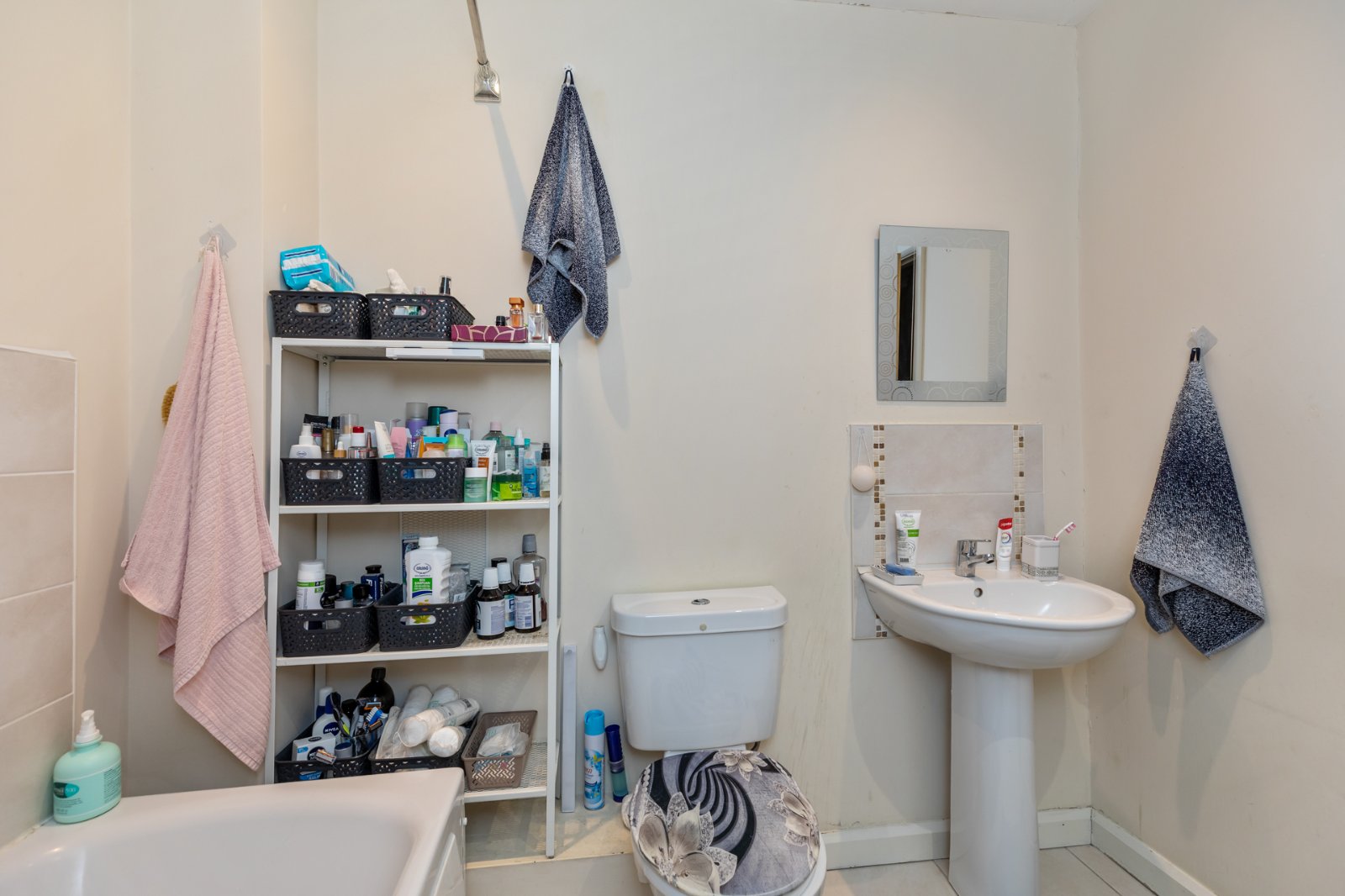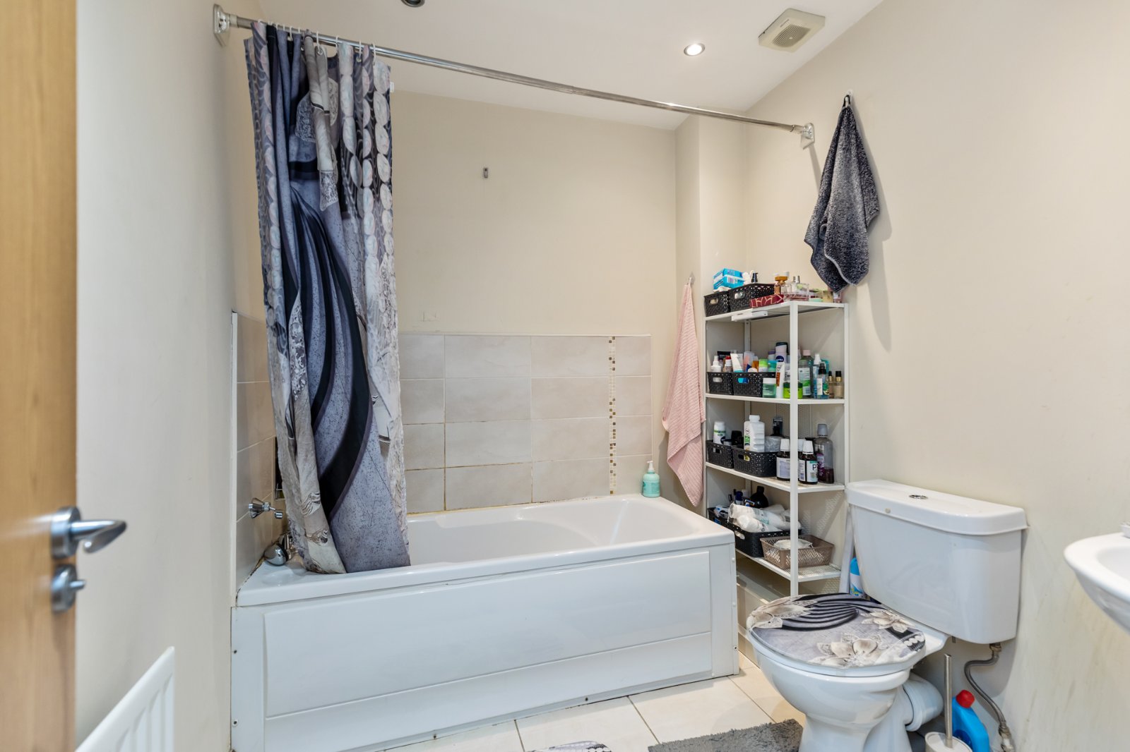 Comprises of enclosed corner shower unit with shower screen, pedestal wash hand basin with mixer tap, low flush WC, recessed lighting and Extractor fan.