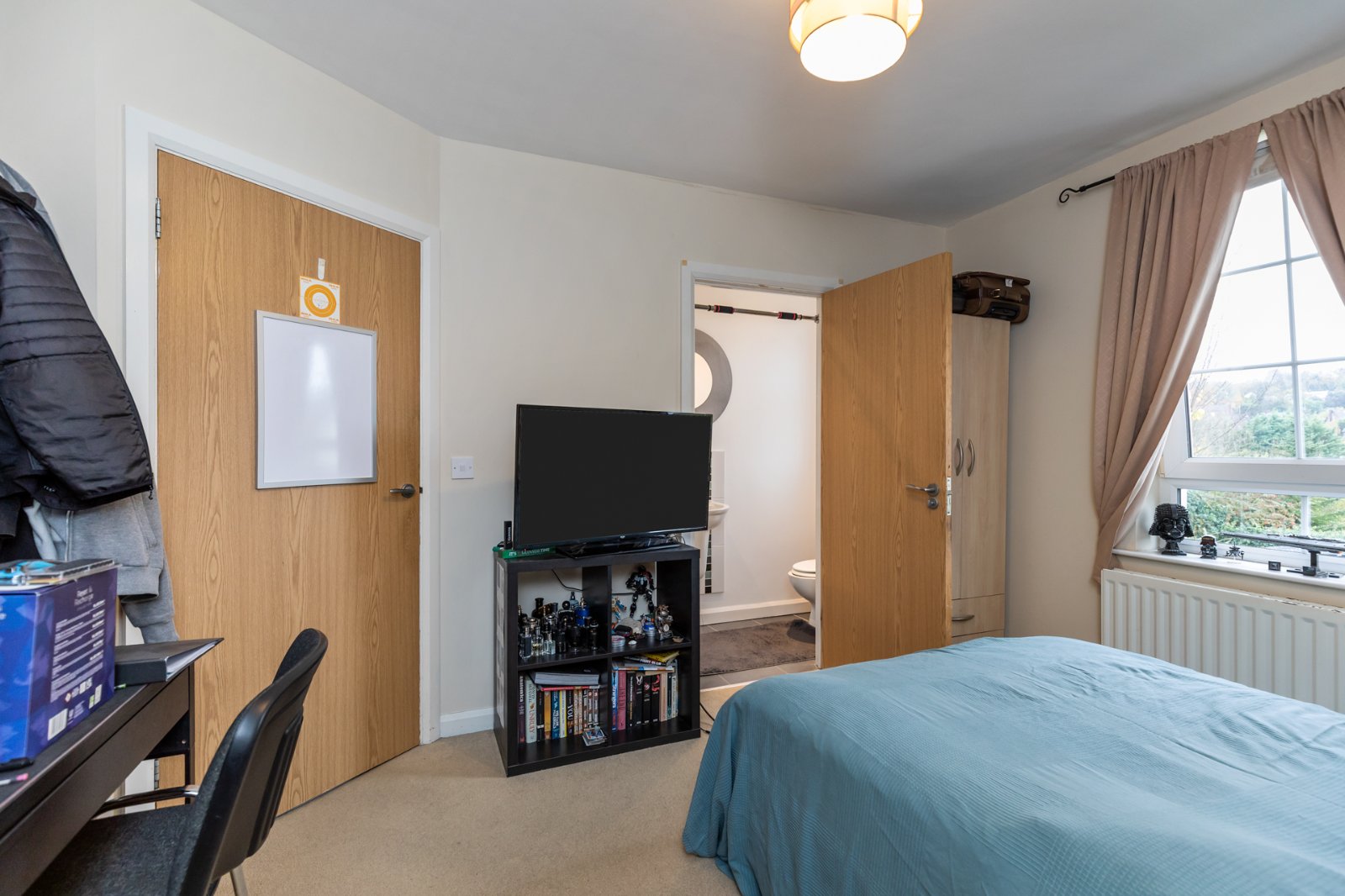 There are two well-proportioned bedrooms, including a main bedroom with ensuite shower room, alongside a separate bathroom.