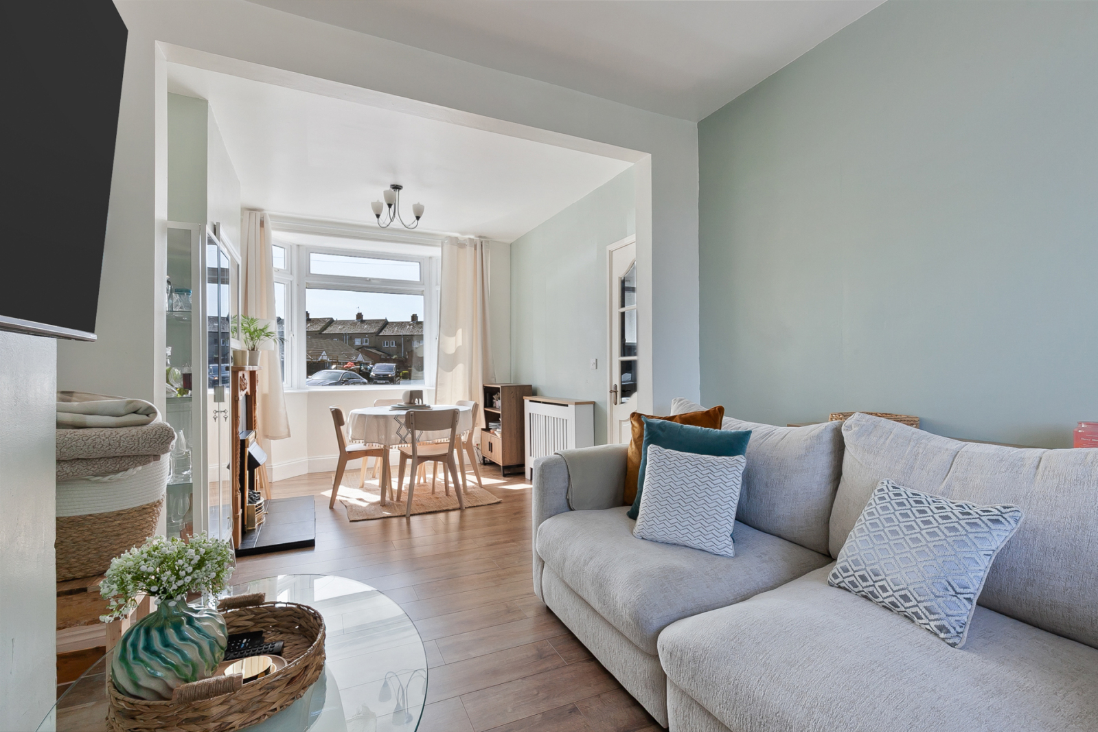 Upon entering, you are greeted by a welcoming entrance hall that leads into a bright and spacious open plan living and dining area, enhanced by dual aspect bay windows that flood the space with natural light.
