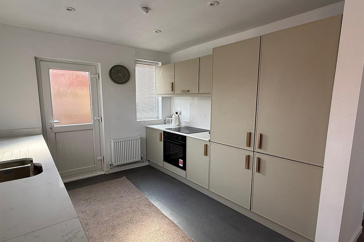This well-presented three-bedroom offers a tasteful lounge featuring an electric stove, providing a cozy and inviting living space. The newly fitted modern kitchen, finished in a stylish sage green palette, includes an oven and ceramic hob and is open plan to a bright dining room, ideal for both everyday living and entertaining.