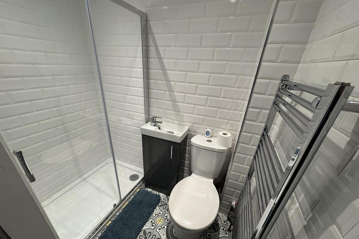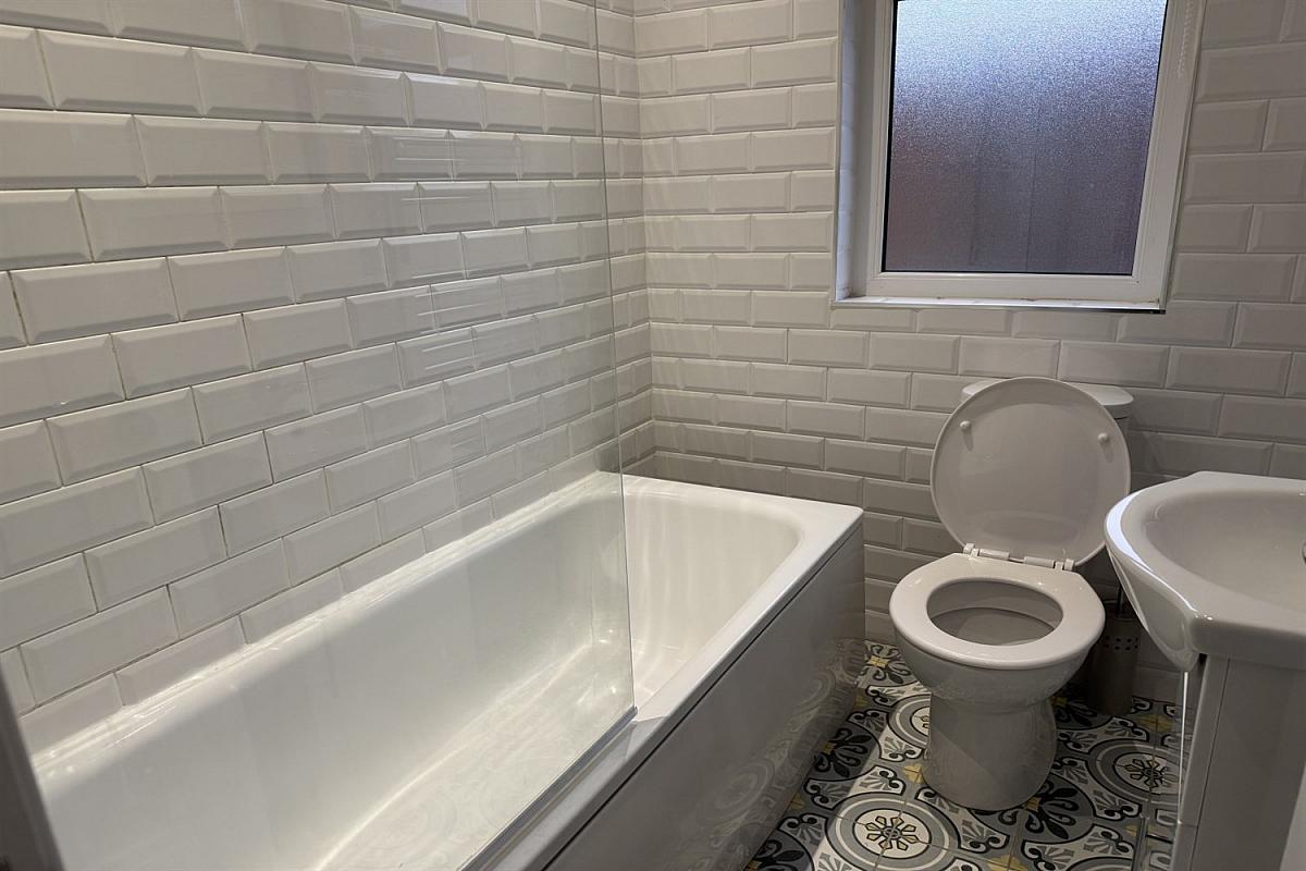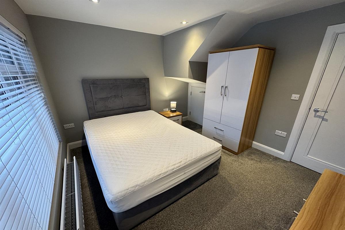 Also on the first floor is the second double bedroom, also furnished to a high standard with a double bed, wardrobe and drawers and the main bathroom of the property which has been stylishly finished and features a shower over tub configuration.