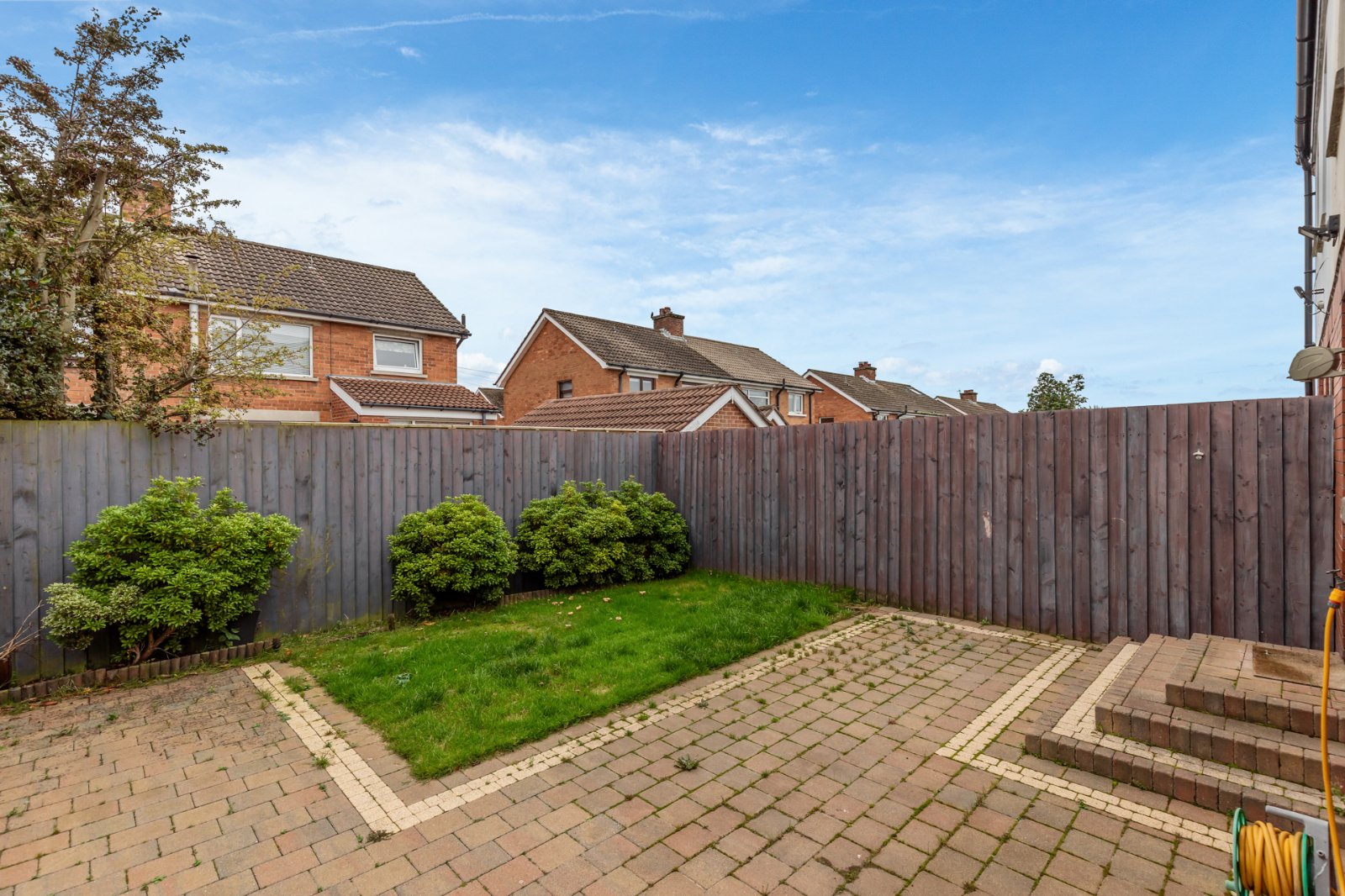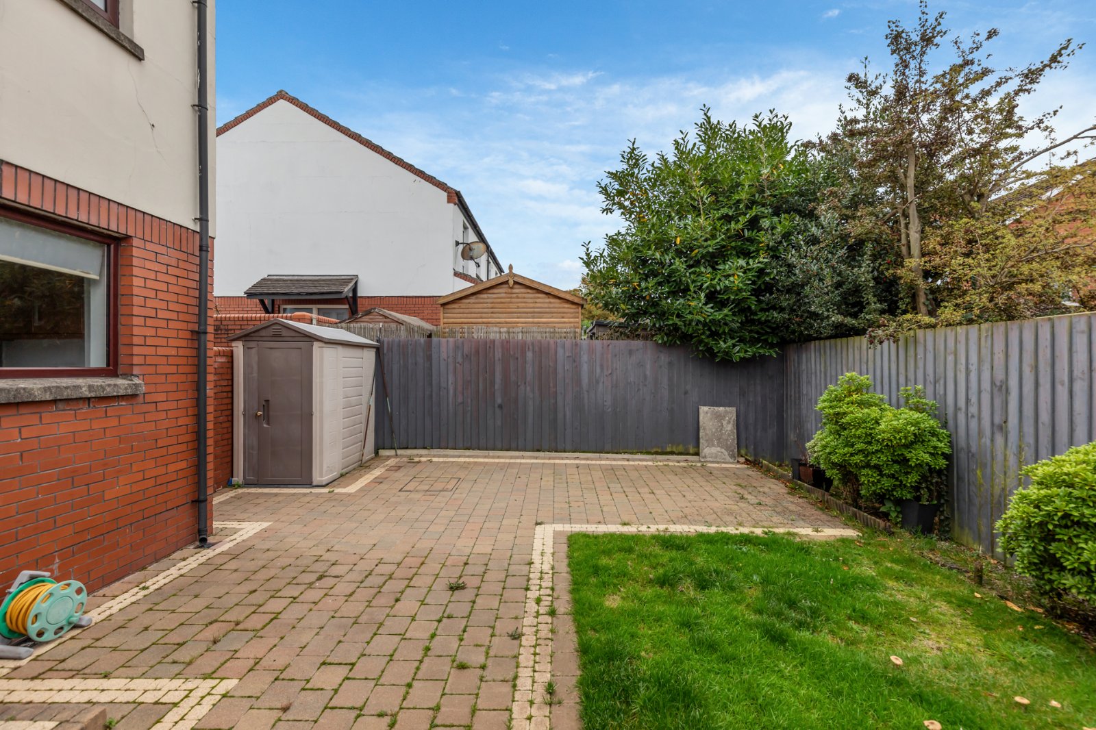 Externally to the front, gardens are laid in lawn with brick paver driveway, for off street car parking. South facing rear garden laid in lawn with brick paver slabs and mature shrubs.
