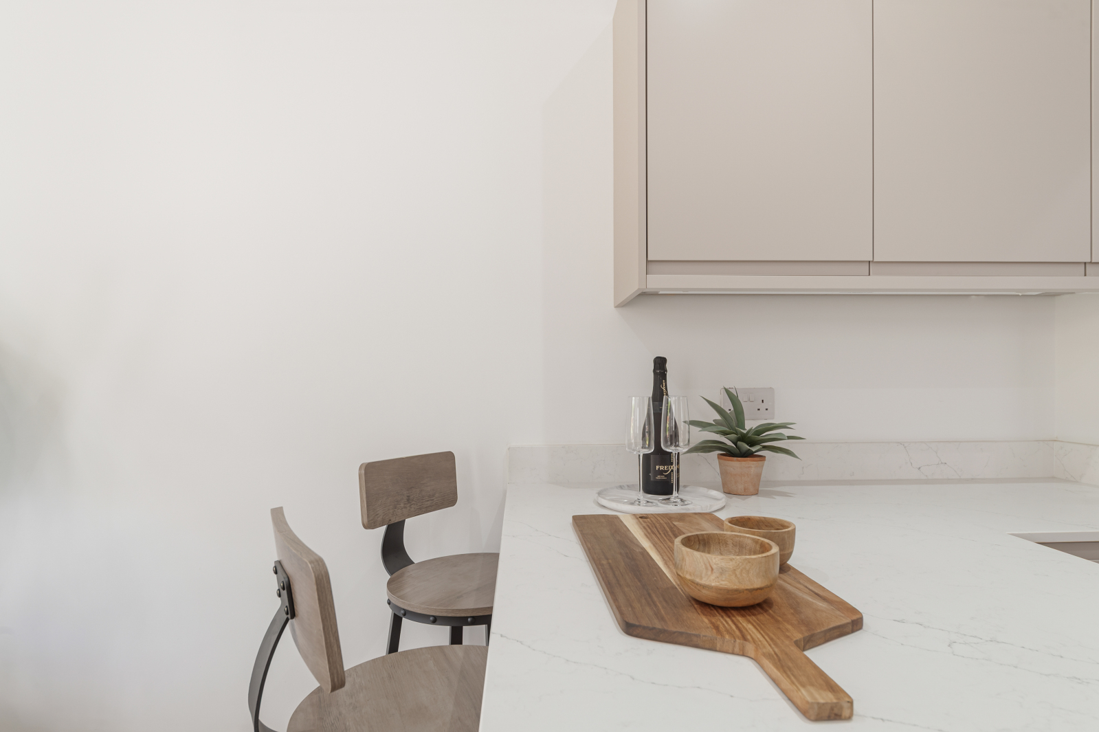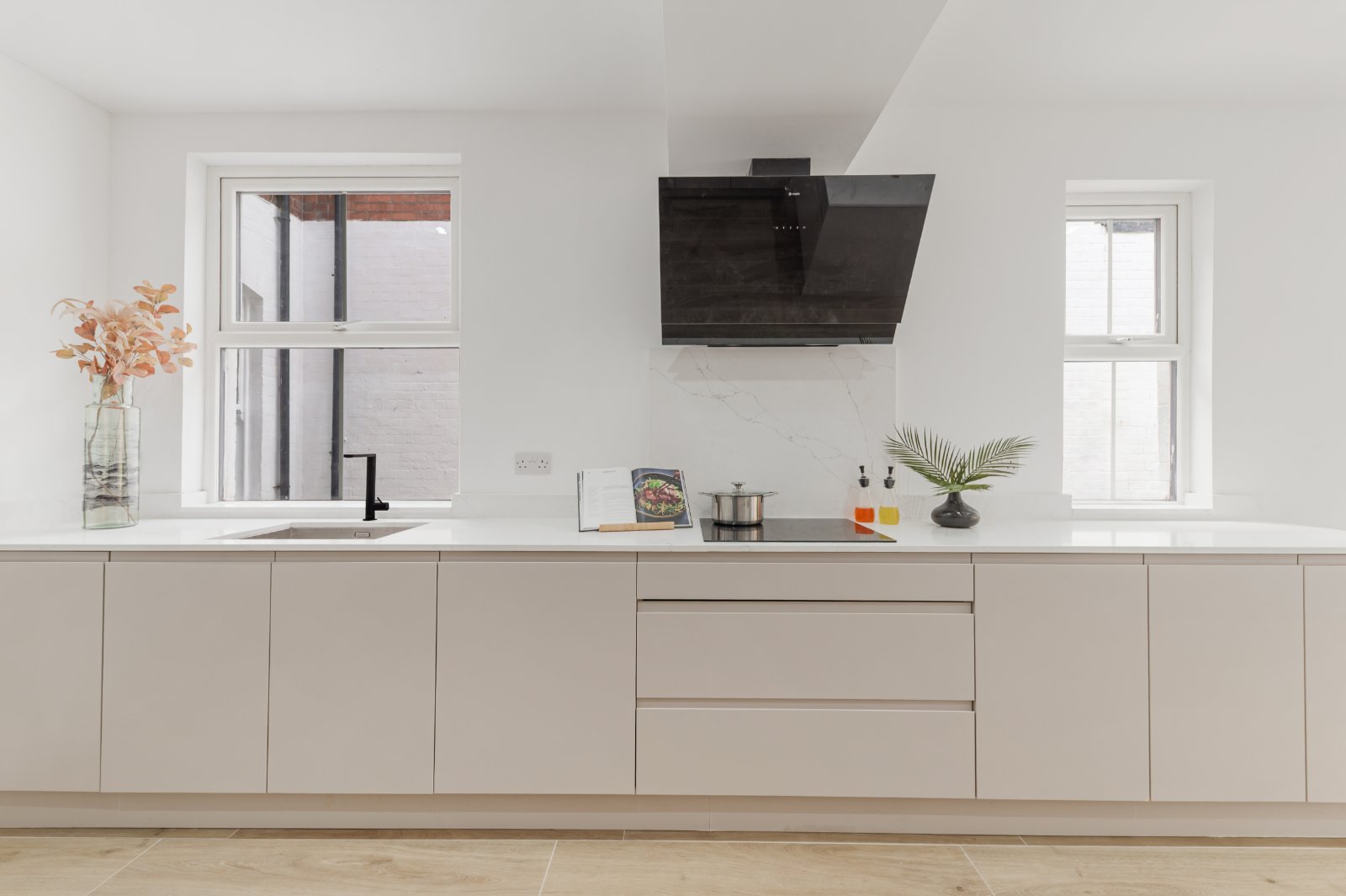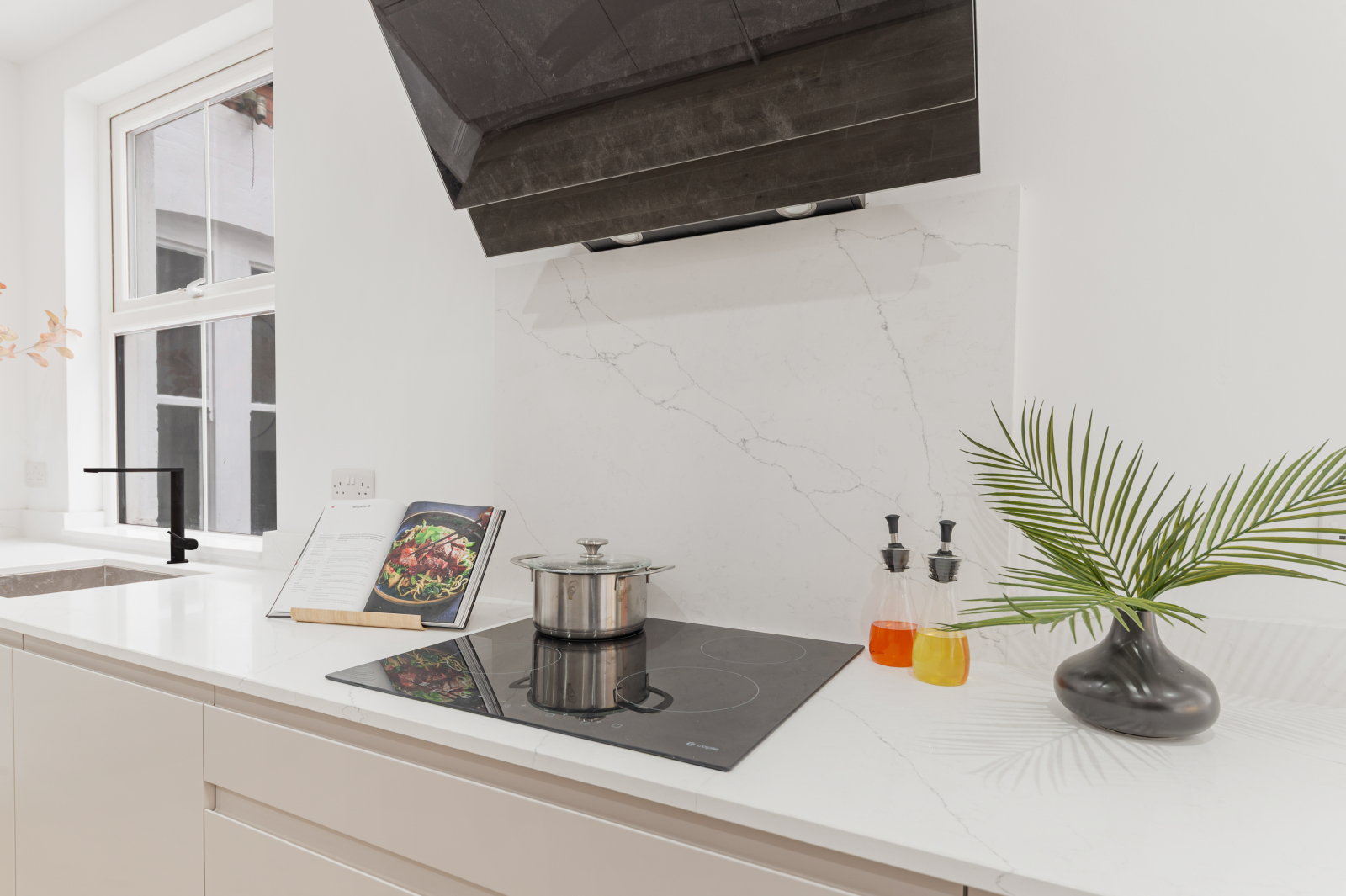 Fantastic range of high and low level units, quartz work surfaces, stainless steel sink unit and drainer, 1 tub with mixer tap, integrated oven, integrated microwave / grill, integrated fridge freezer, four ring induction hob with extractor fan above, quartz kitchen splash back, integrated dishwasher, integrated wash dryer, porcelain wood effect flooring, recessed spotlighting, breakfast bar for casual dining, open to living / dining area with porcelain wood effect tiled flooring, recessed spotlighting, sliding door leading through to rear garden.