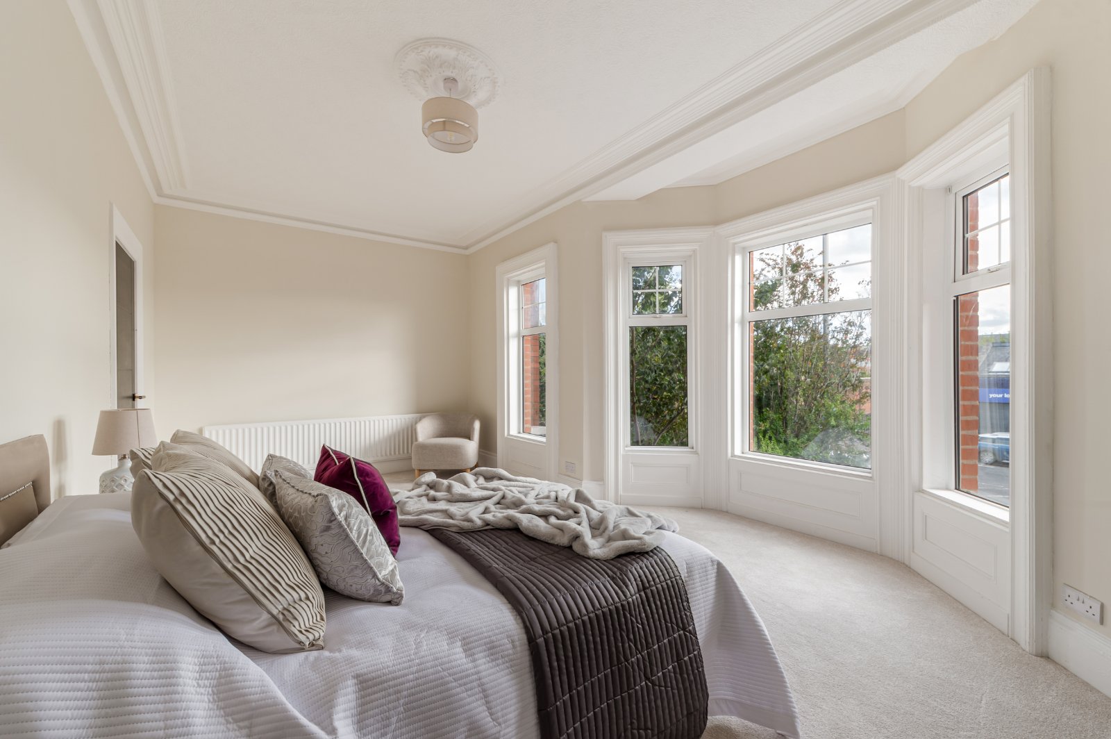 Cornice ceiling, picture rail, sliding sash windows, outlook to rear.