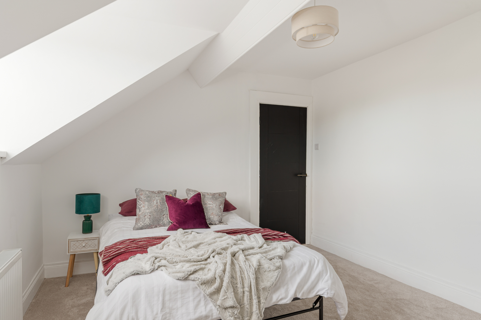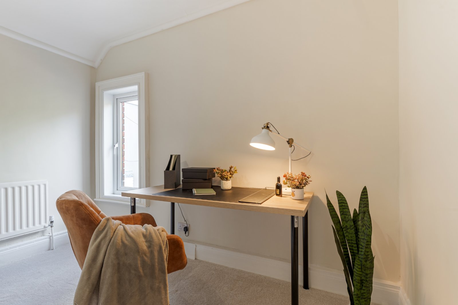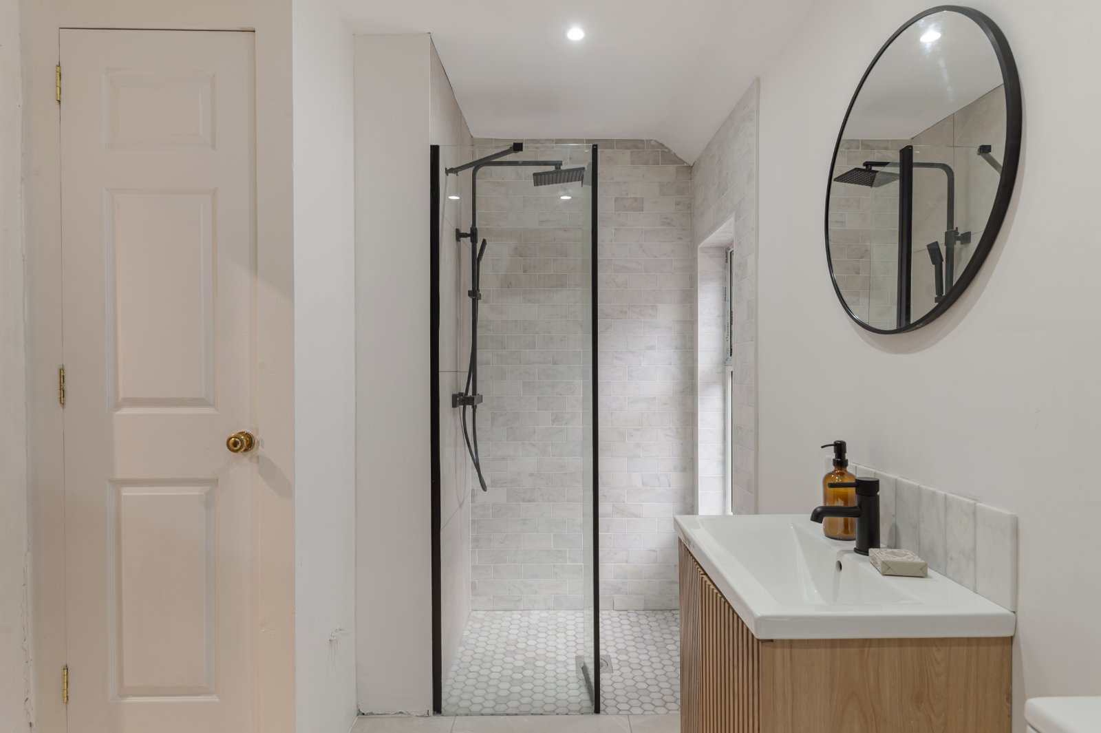 The first floor is well planned, offering three well-proportioned bedrooms alongside a newly installed luxury bathroom. The bathroom is beautifully appointed with high-quality fittings, including a separate walk-in shower, combining both style and practicality. On the second floor, there are two additional bedrooms, making this a generous five-bedroom home. This flexible layout allows for a variety of uses, such as guest rooms, home offices, or playrooms, catering to the demands of modern family living.
