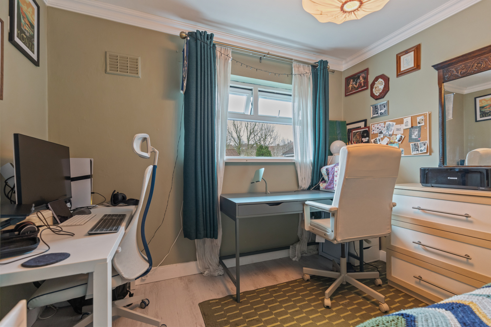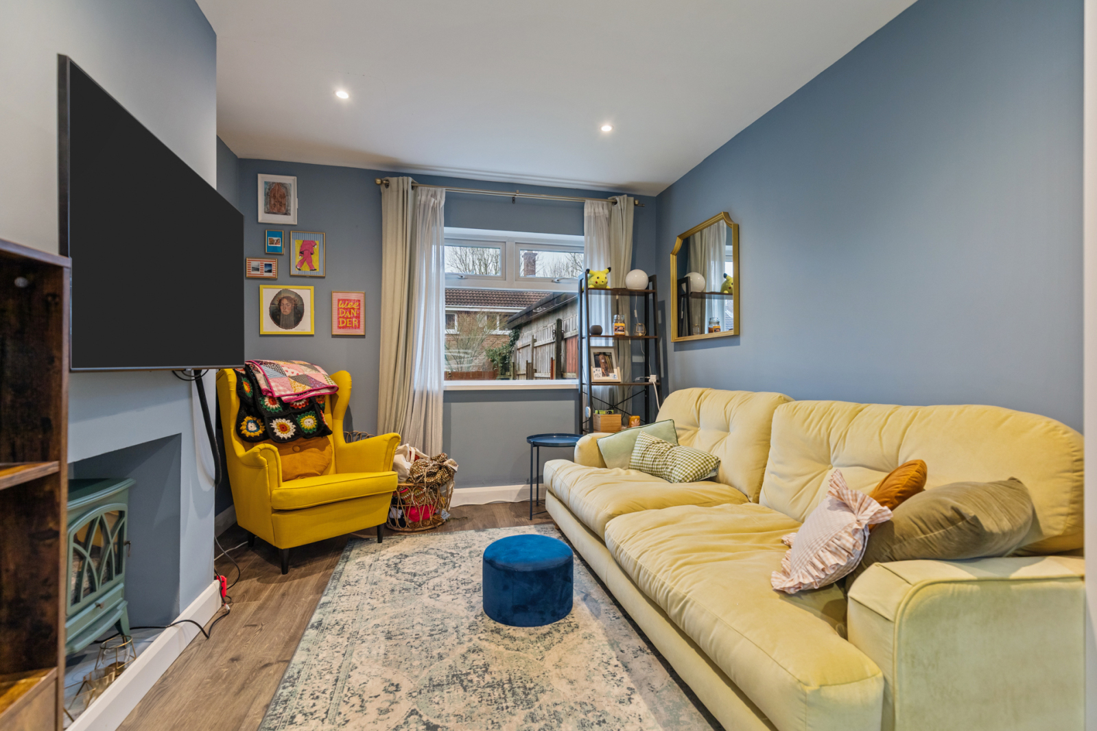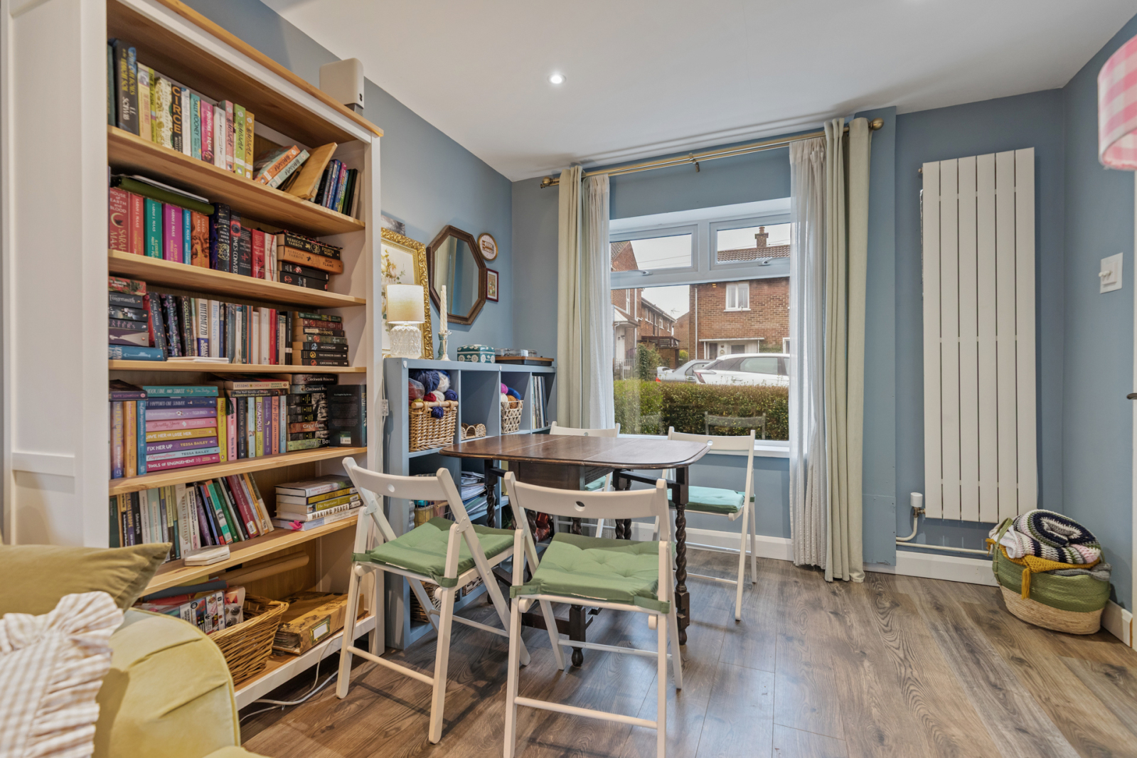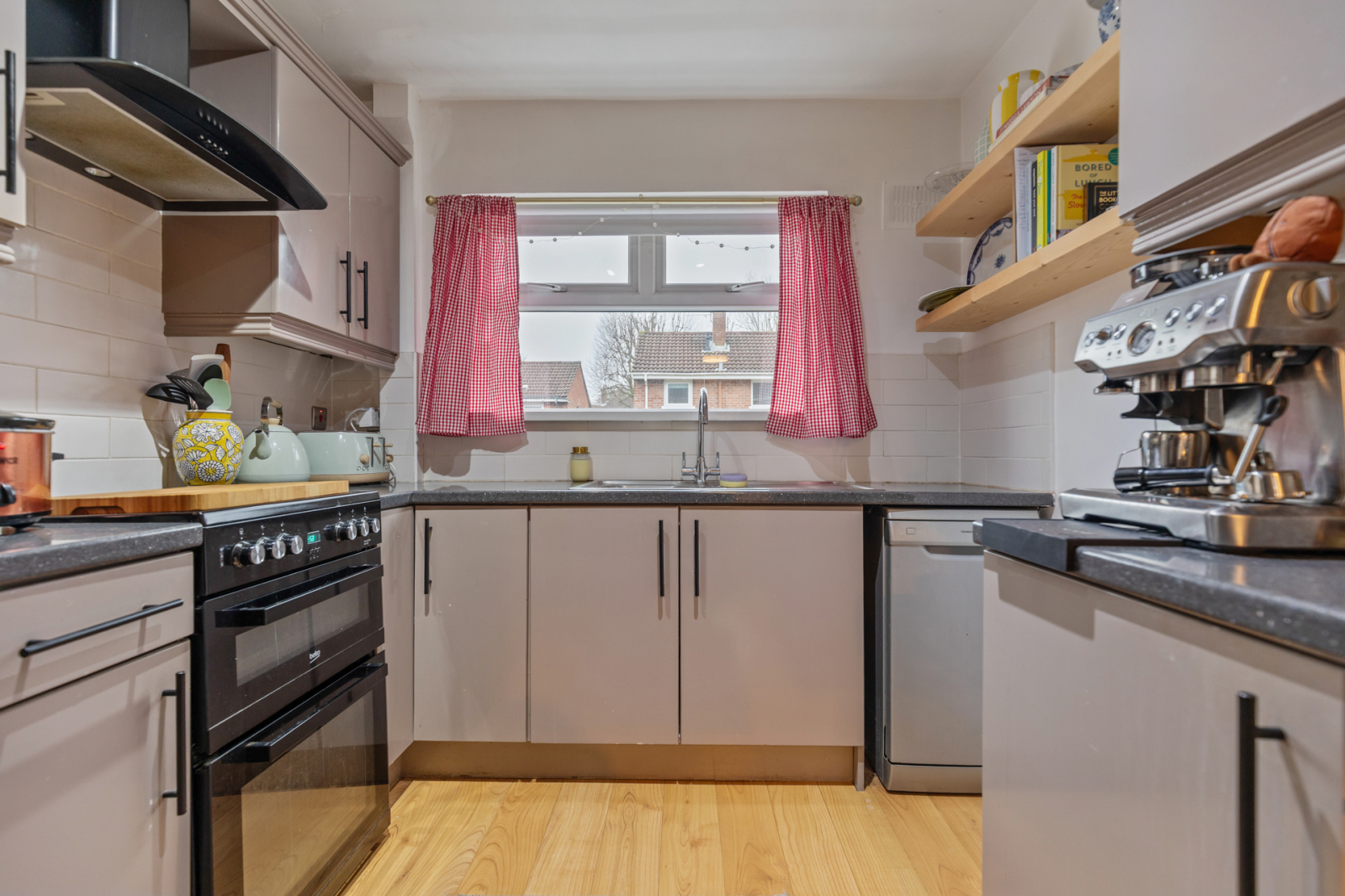 Dual aspect to front and side, recessed spotlighting, laminate wood effect flooring.