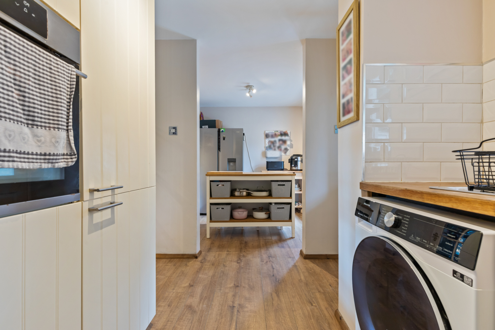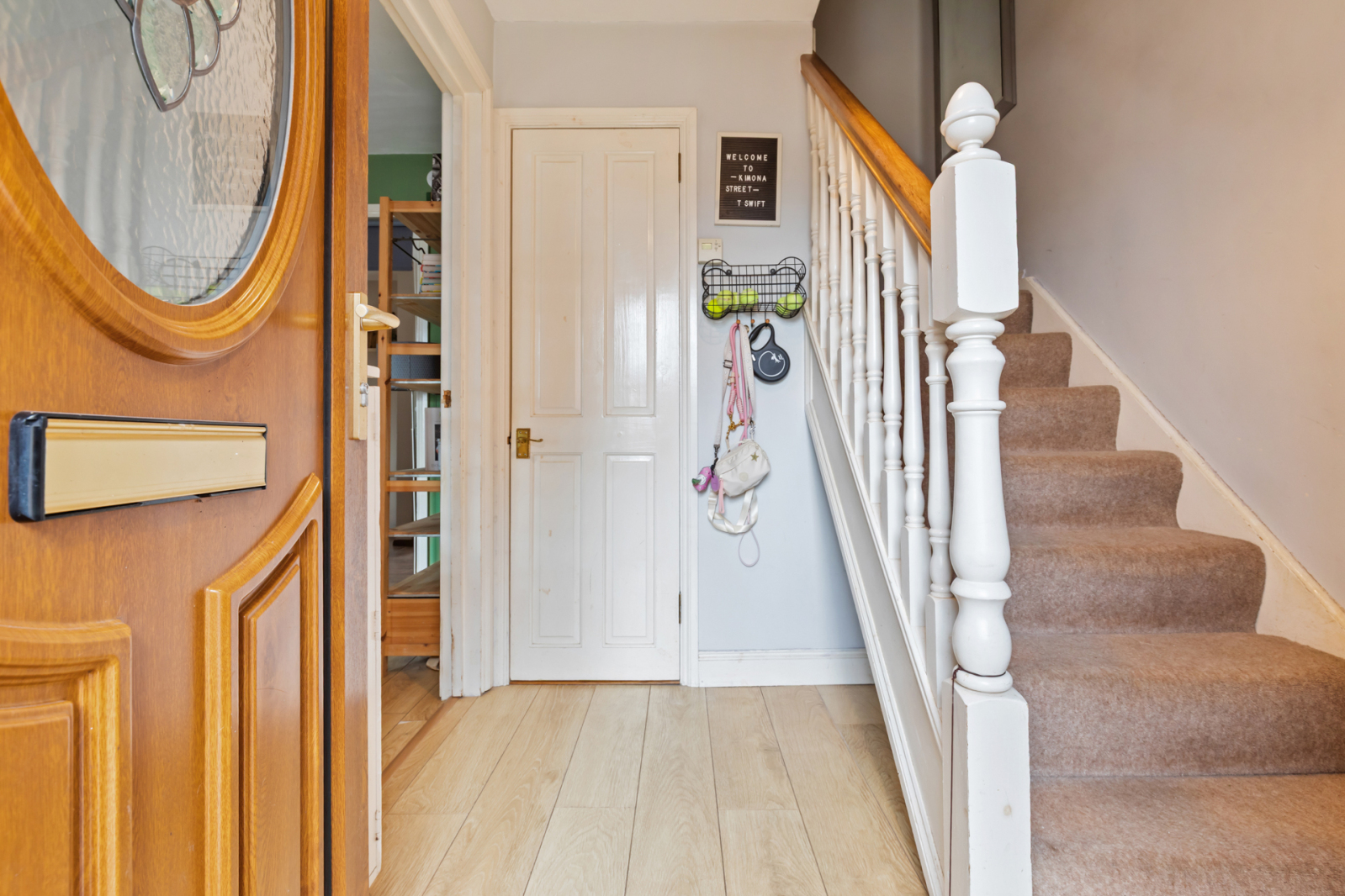 Walk in cloaks cupboard, under stairs storage. Laminate wooden flooring.