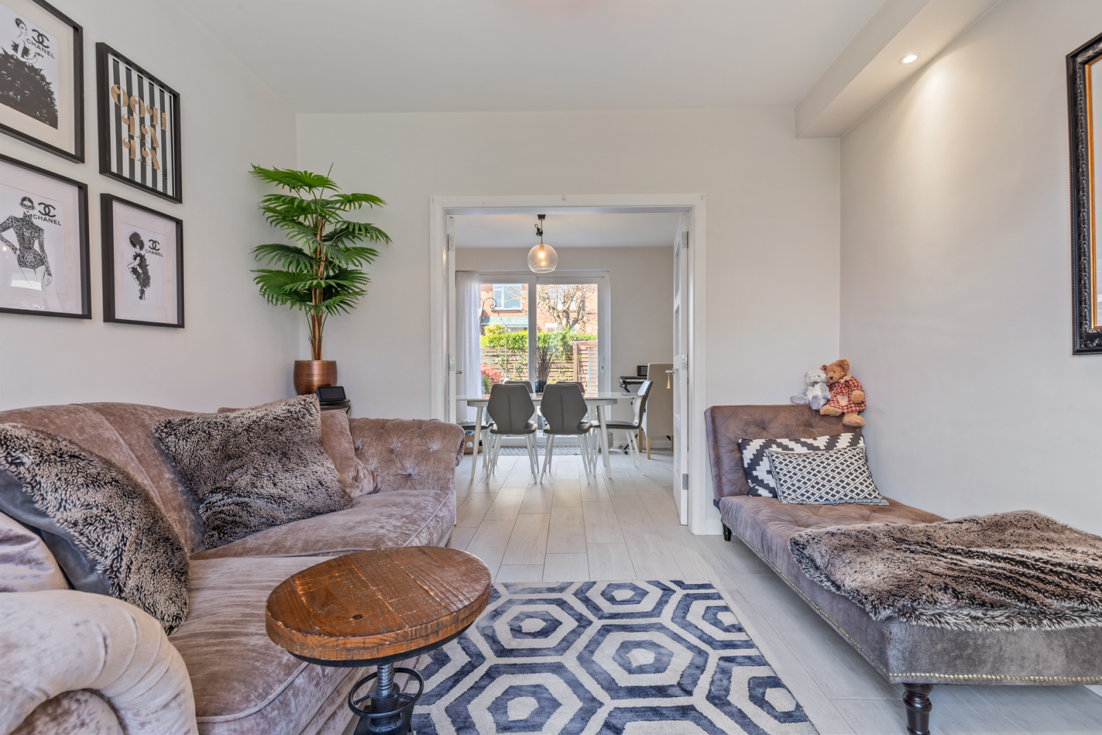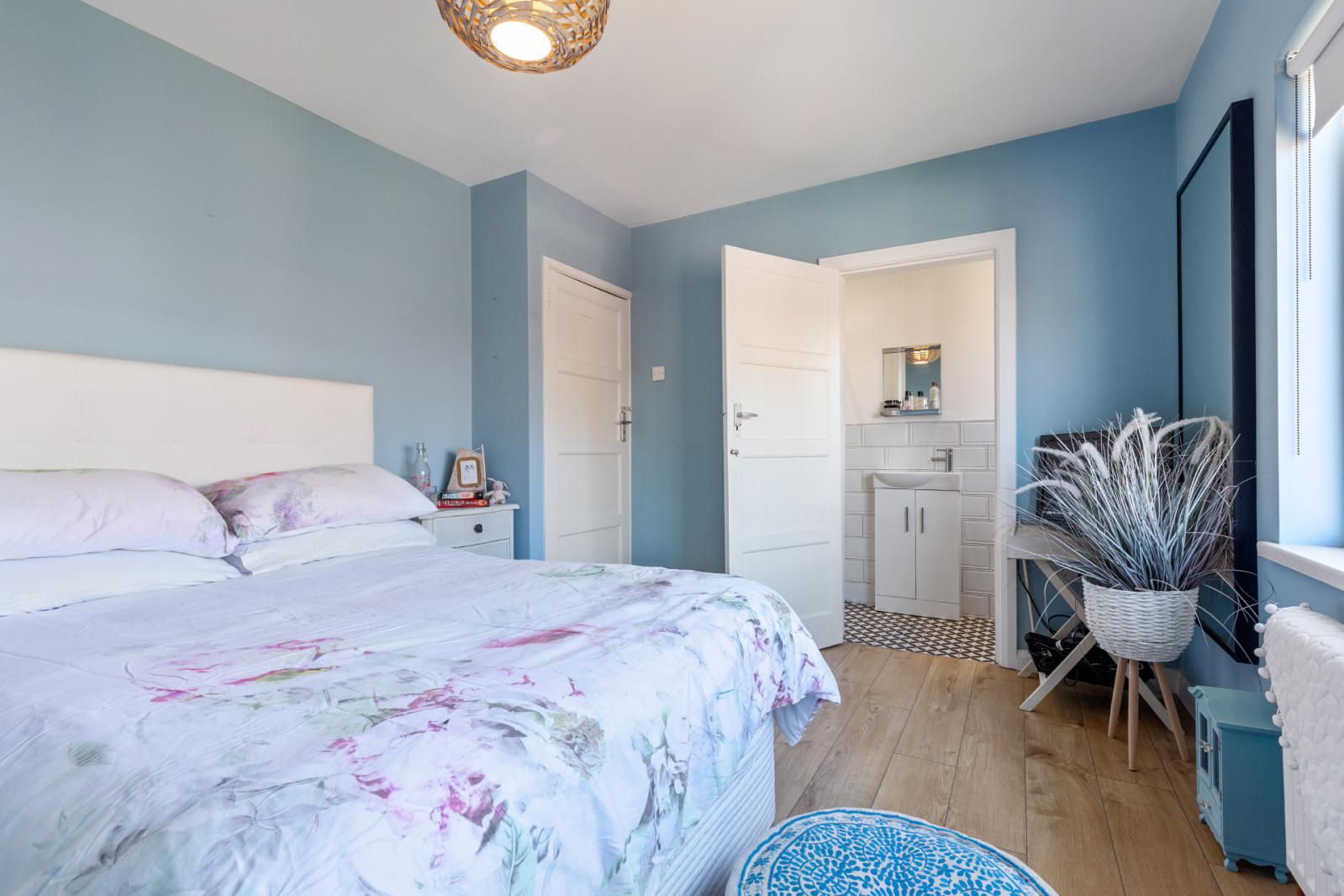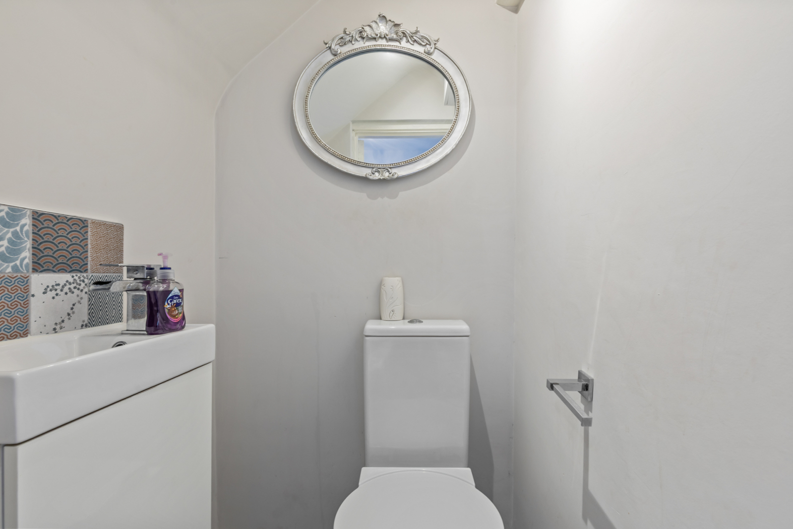The property comprises three generous bedrooms, including a principal bedroom with ensuite shower room, a bright and spacious living room, and a fitted kitchen open plan to a dining area-ideal for both everyday living and entertaining. A convenient downstairs cloakroom with WC and a main family bathroom fitted in a classic white suite complete the internal layout.