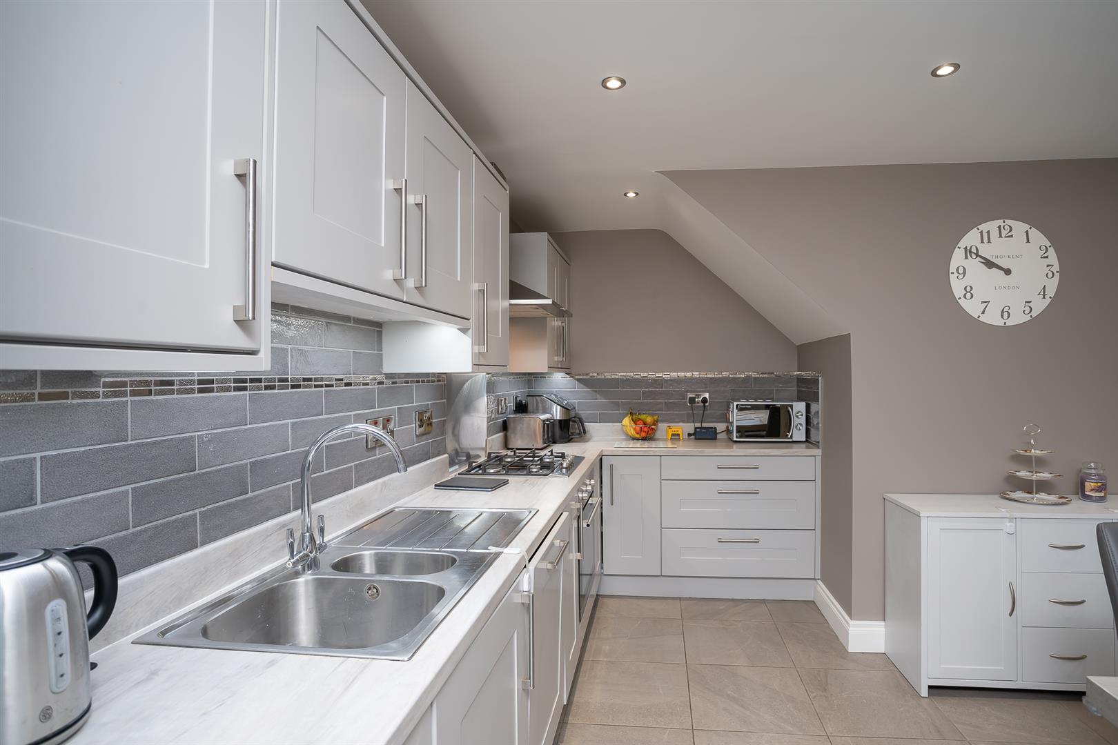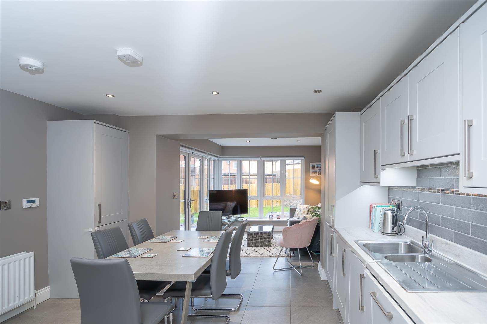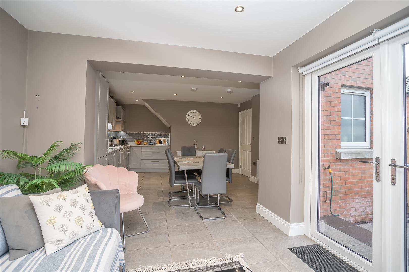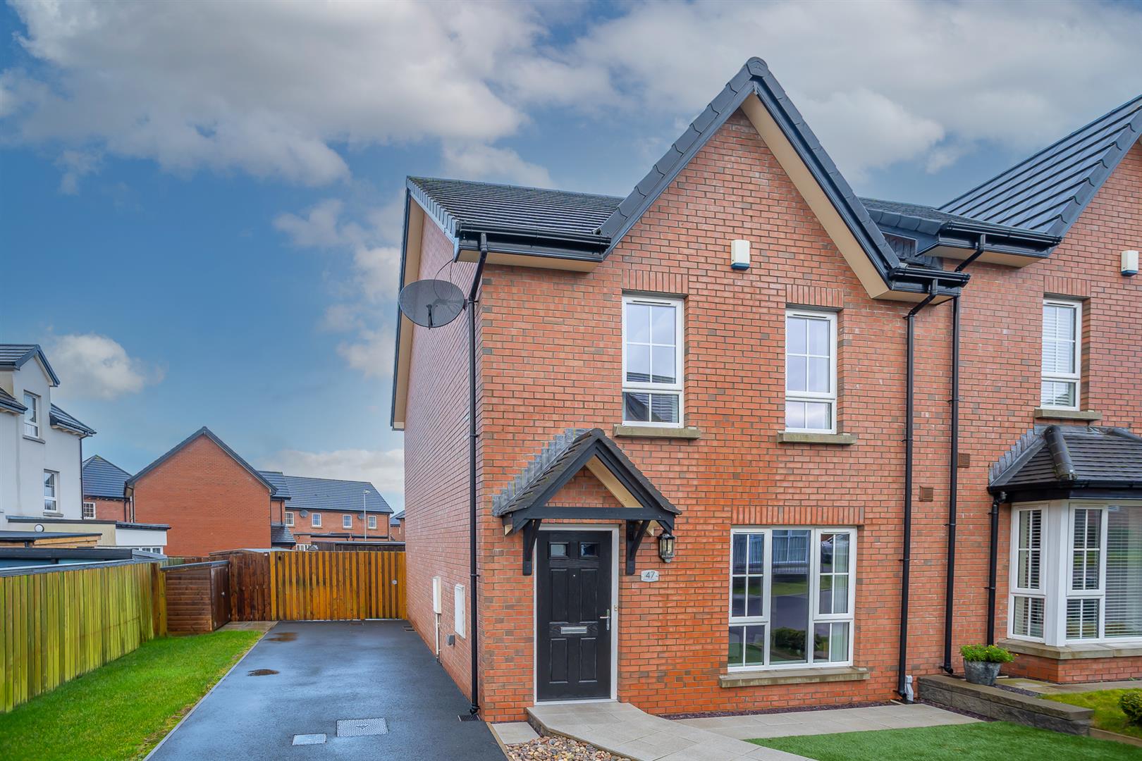 HMK Property is delighted to bring to the market 47 Millmount Village Park. This beautifully presented red-brick semi-detached home offers contemporary living in a sought-after residential location. On entering, you are greeted by a bright entrance hall that leads to a comfortable front lounge, with a large picture window overlooking the front of the property and a feature electric fireplace with granite hearth, granite inset, and limestone surround, and seperate downstairs cloakroom/WC. The heart of the home is undoubtedly the modern, fully fitted kitchen with a fantastic range of integrated appliances, open to the dining area, which is perfect for everyday family meals and hosting dinner parties. The dining area flows seamlessly into the sunroom, which is bathed in natural light and offers access to the rear garden, creating a wonderful indoor-outdoor living experience. On the first floor, there is a spacious landing with access to floored roofspace via a slingsby ladder, and three generously sized bedrooms, the master with a stylish en-suite shower room. The two further bedrooms are ideal for family members, guests, or a home office, and a well-appointed family bathroom with a shower over bath, and a separate utility cupboard. Further benefits include gas central heating and uPVC double glazing. Externally, the property offers an easily maintained west-facing garden with an extended paved patio area, providing space for outdoor seating and dining while requiring minimal upkeep. To the front, a generous driveway provides ample parking for two cars. With its excellent layout and modern finishes, 47 Millmount Village Park is a home that perfectly combines comfort and style. To arrange a viewing, contact HMK Property on 028 90397712.